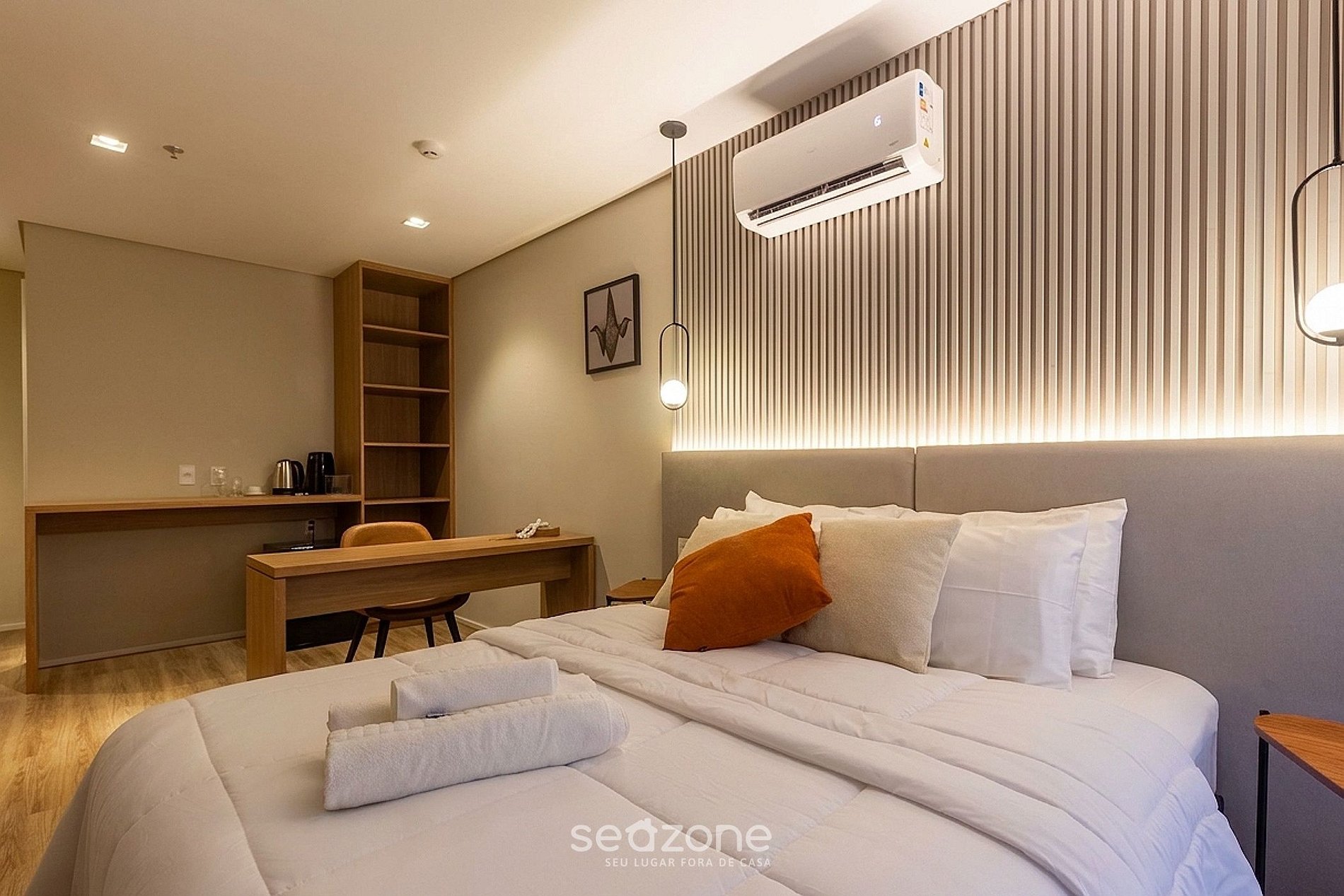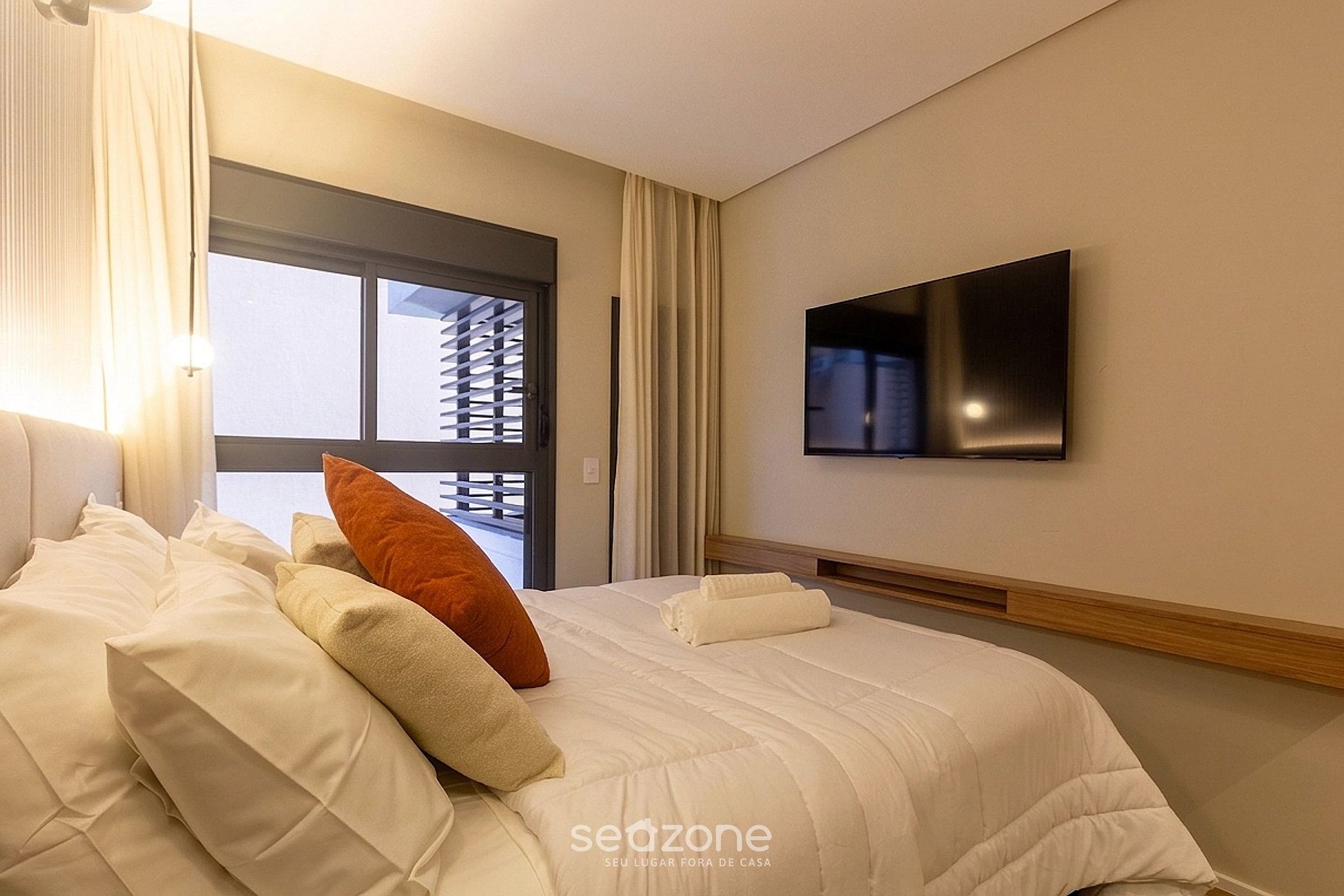 - Roupas de cama e banho de qualidade hoteleira (roupas de cama e toalhas extras são cobrados pela Seazone);