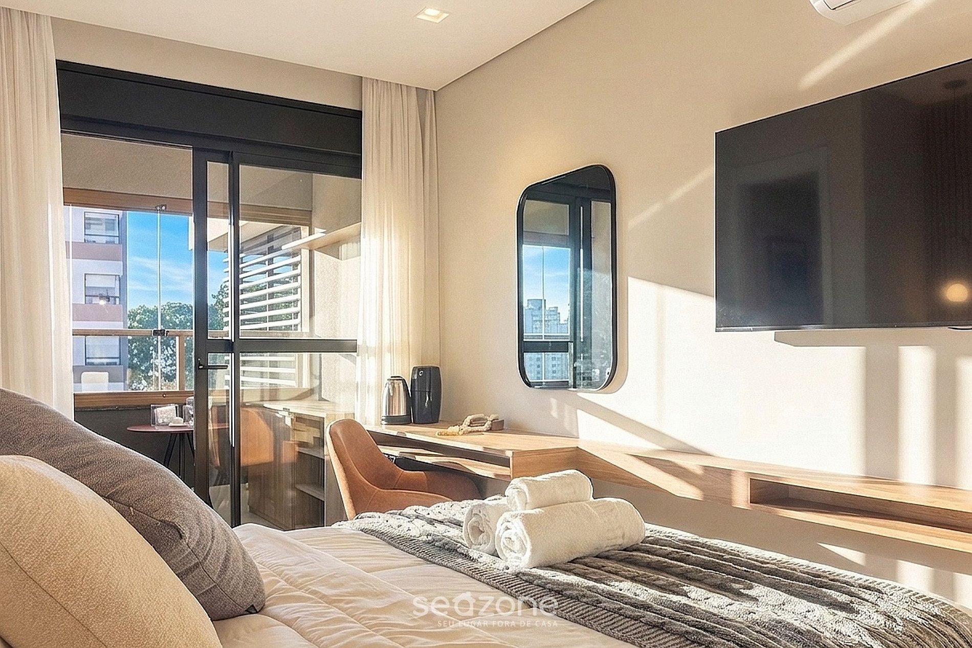 - Roupas de cama e banho de qualidade hoteleira (roupas de cama e toalhas extras são cobrados pela Seazone);