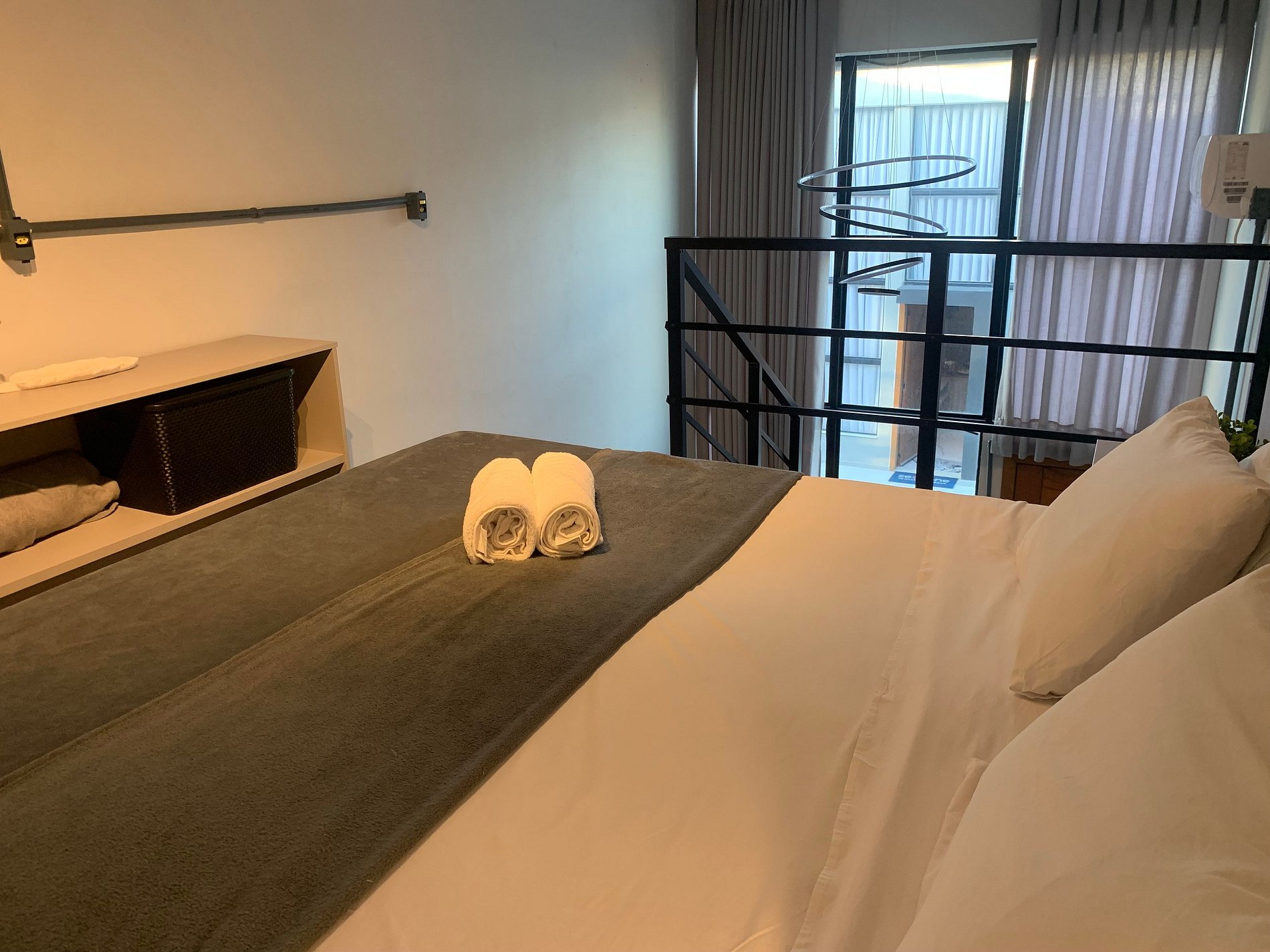 - 1 Estúdio com 1 Cama queen size, armário e ar-condicionado;