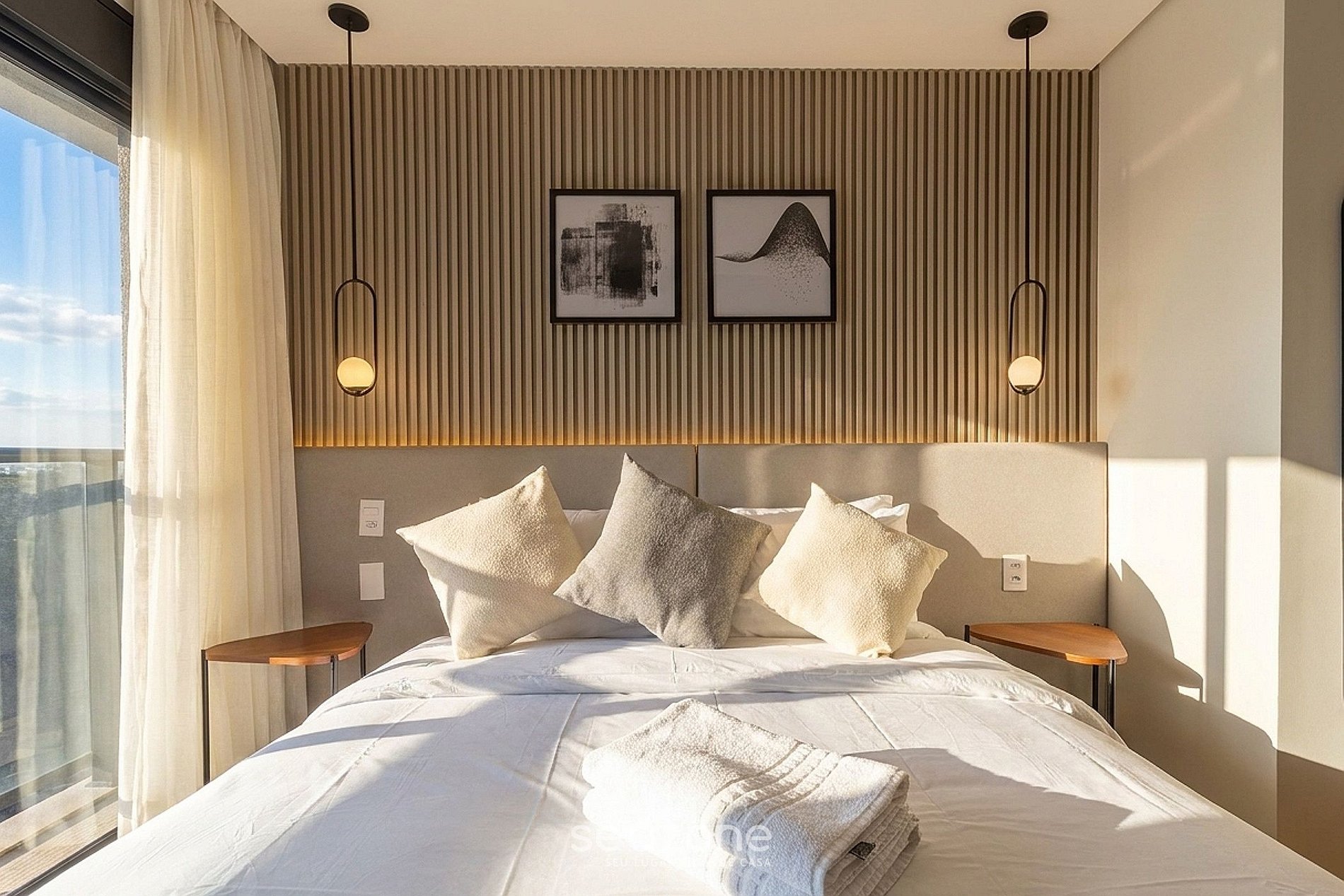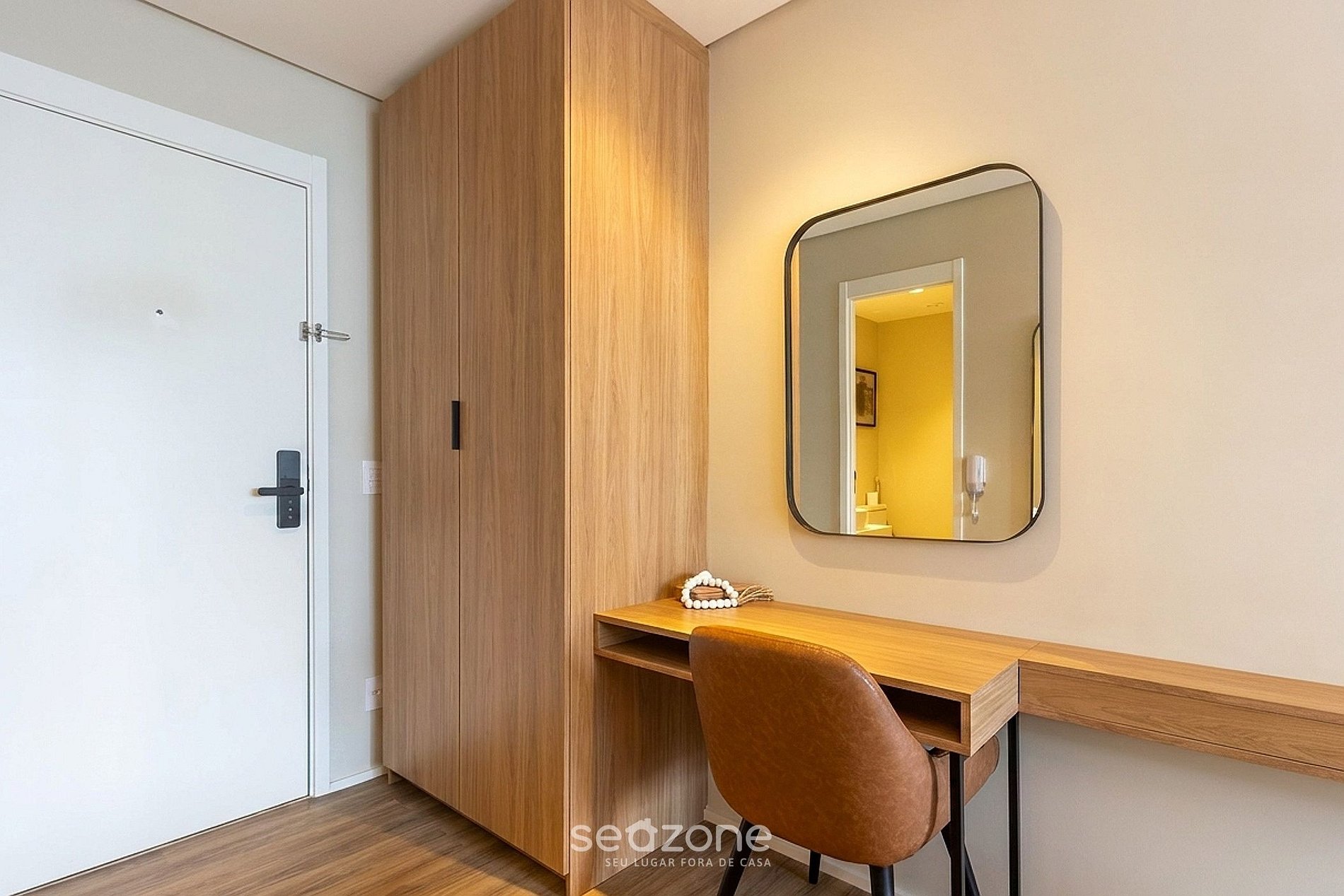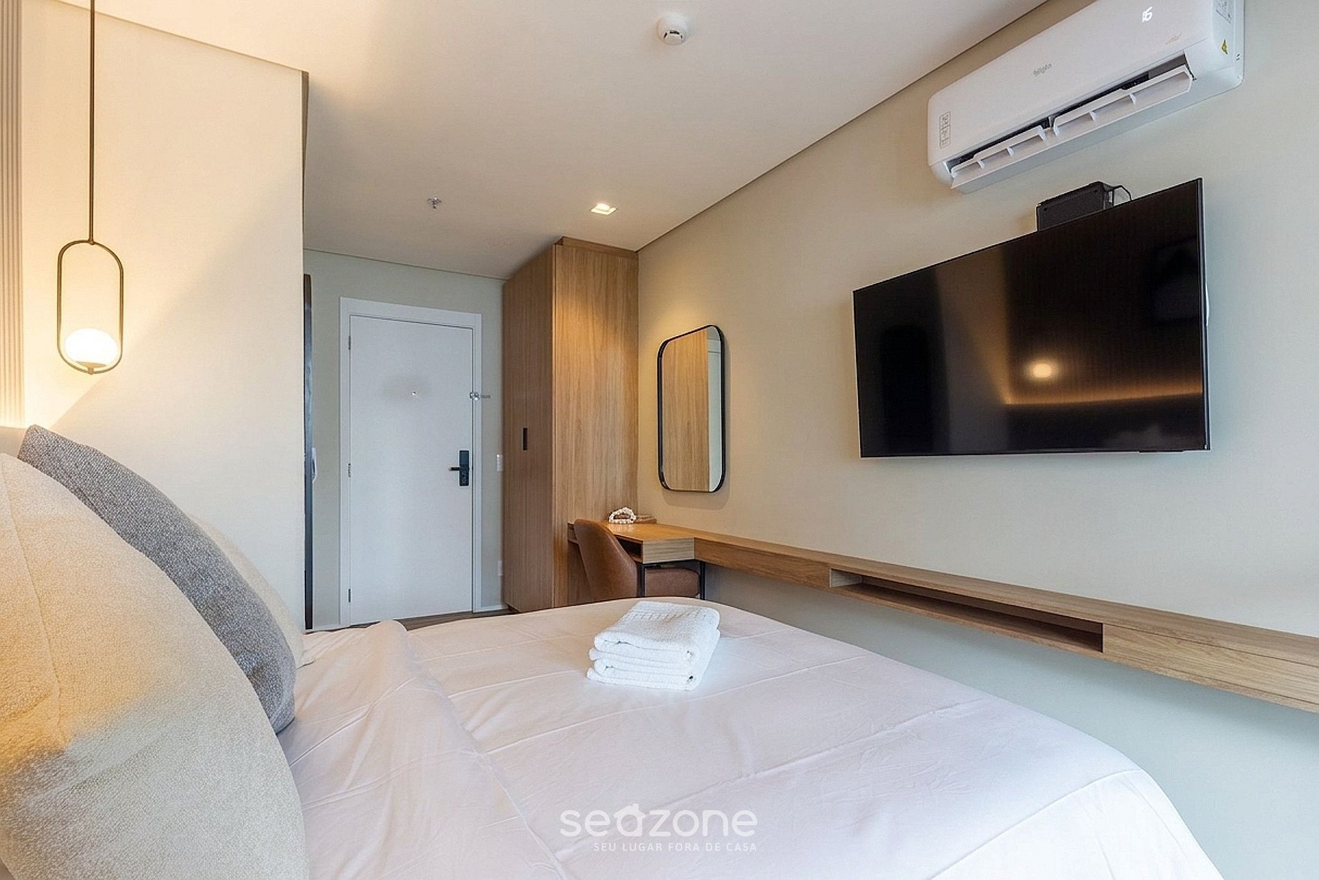 - Estúdio com uma cama queen size, armário TV e ar-condicionado;
