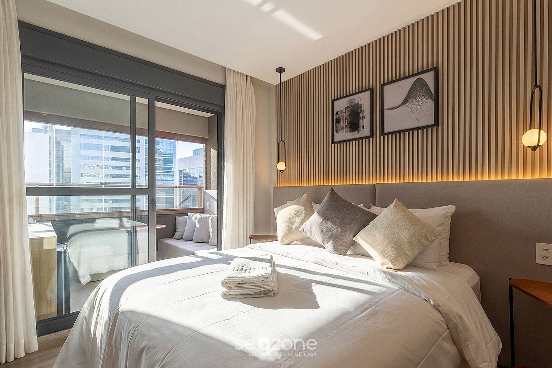 Estúdio funcional na Bela Vista, São Paulo, para viajantes solo ou casais que buscam praticidade. A apenas 620m do MASP e 660m da Avenida Paulista, oferece ar-condicionado e wi-fi. Com o metrô Trianon-MASP a 590m, desfrute da cultura e gastronomia da região com facilidade.