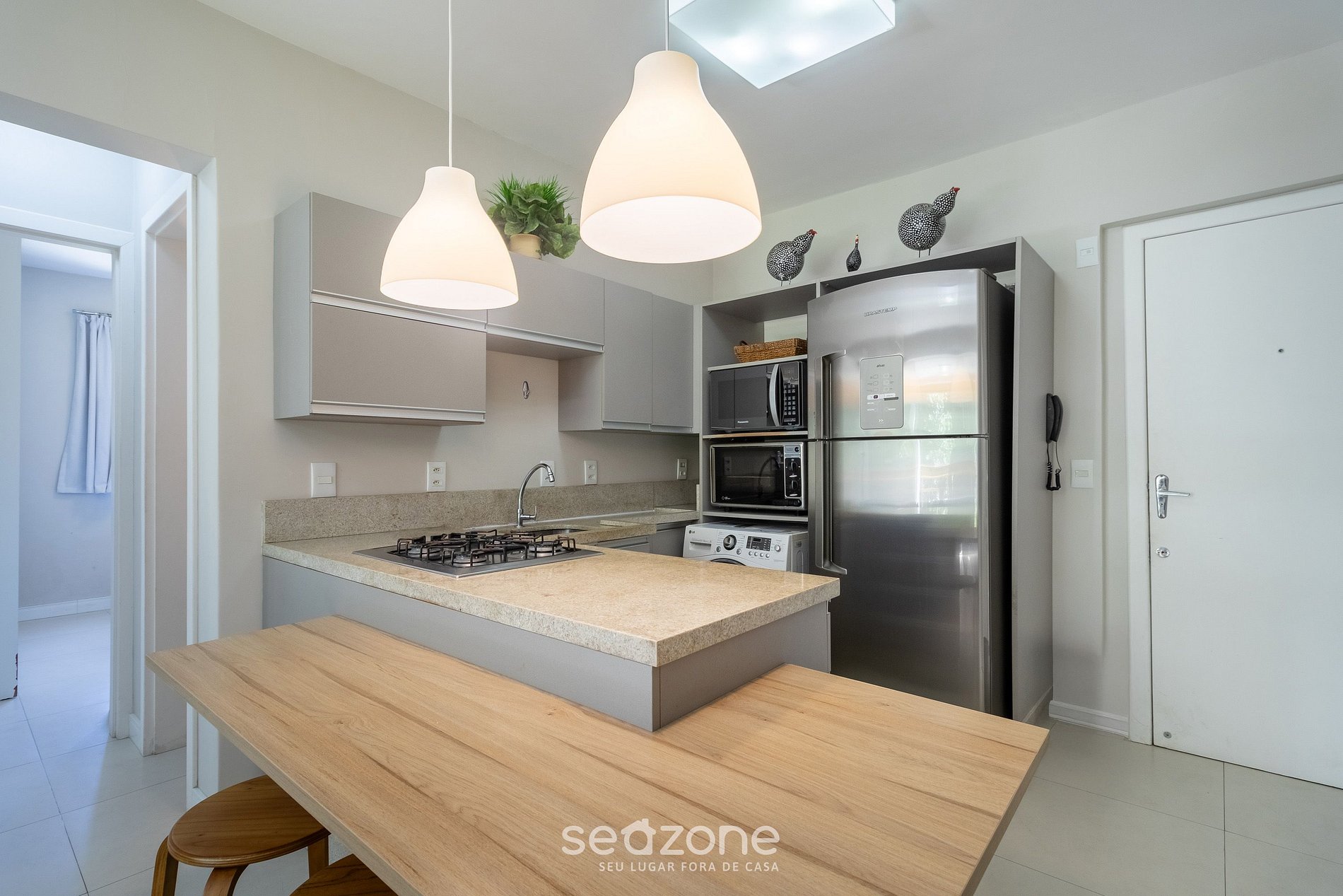 - Cozinha completa com geladeira, fogão cooktop, forno elétrico, micro-ondas, sanduicheira, kit café (funil, garrafa térmica), cafeteira elétrica, chaleira elétrica, liquidificador, taças de vinho, panelas, louças e utensílios;