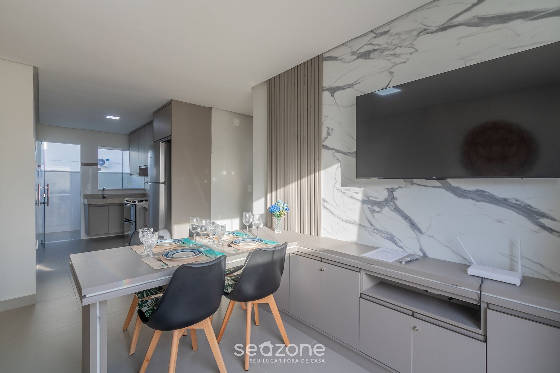 - Espaço para jantar com mesa e 4 cadeiras;