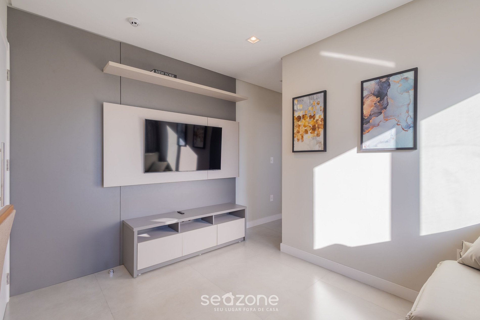 - Sala de estar com sofá-cama de casal, cortinas blackout, Smart Tv e ar-condicionado;