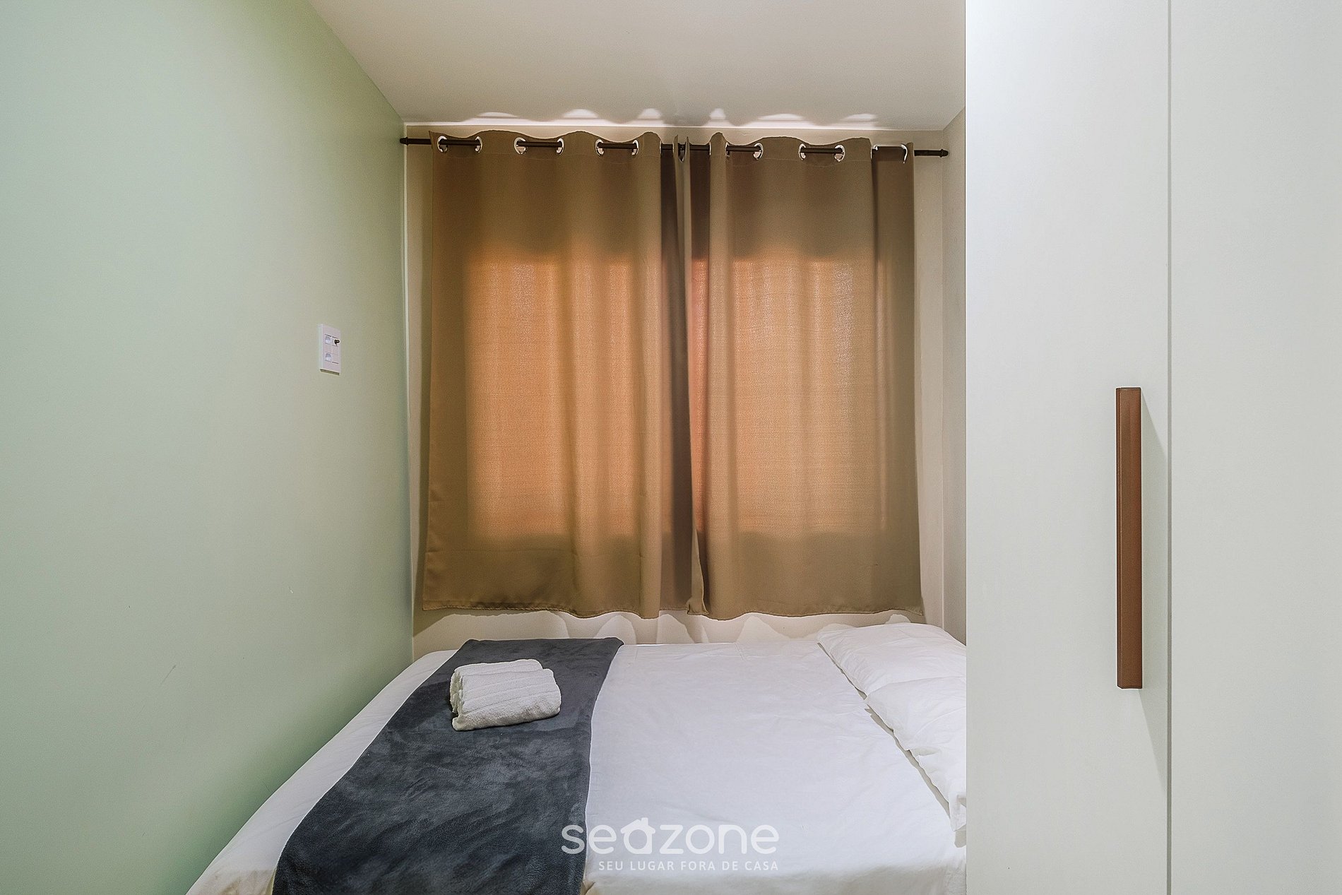 - 1 Quarto com 1 cama de solteiro, 1 cama auxiliar de solteiro, cortinas blackout, armário e ar-condicionado;