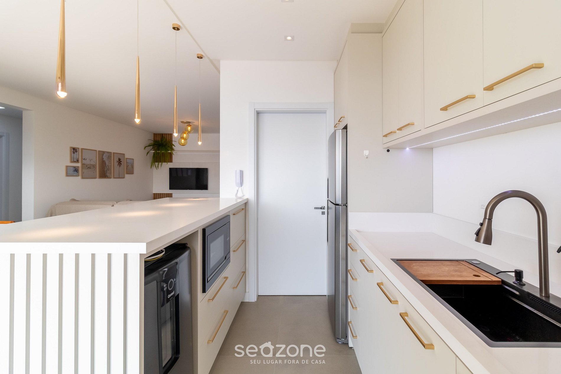 - Cozinha completa com geladeira, cervejeira, cooktop, forno elétrico, airfryer, micro-ondas, sanduicheira, cafeteira elétrica, chaleira elétrica, liquidificador, taças de vinho, panelas, louças e utensílios;