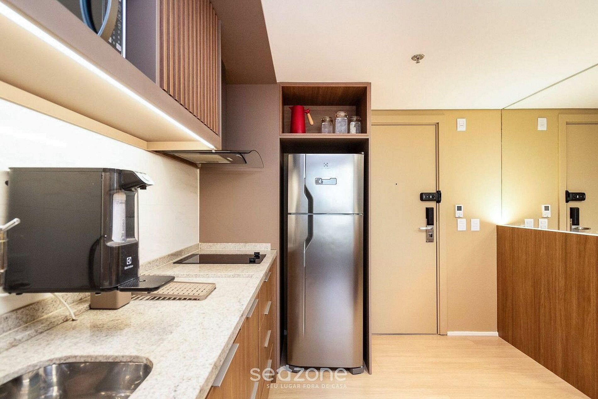 Cozinha equipada, TV smart, Wi-Fi de alta velocidade e check-in sem chave e ar condicionado nos ambientes e para você ter o máximo de conforto.