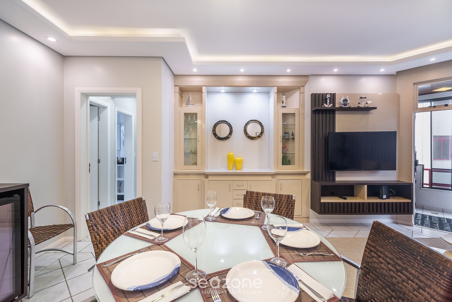 - Espaço para jantar com mesa e 6 cadeiras;