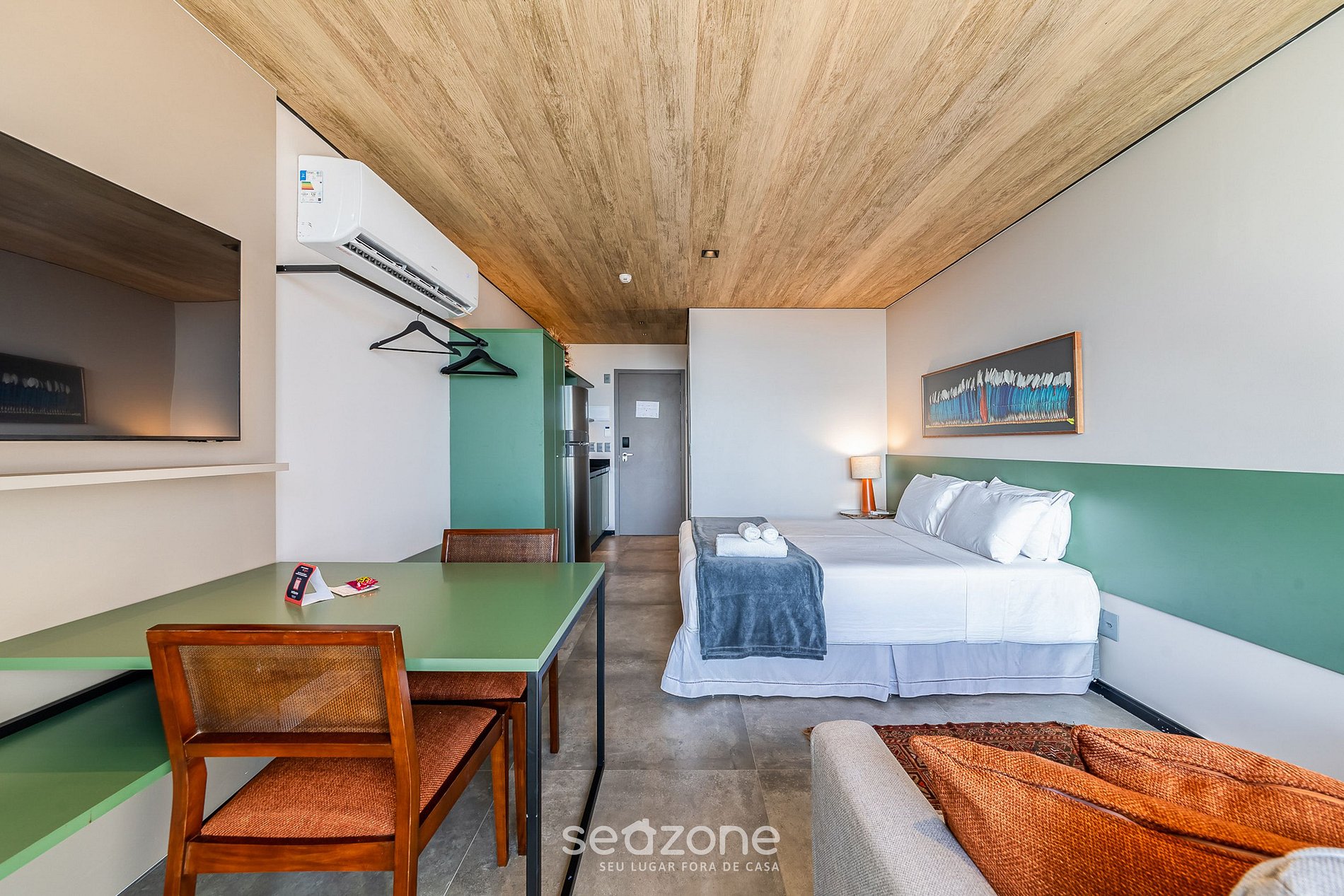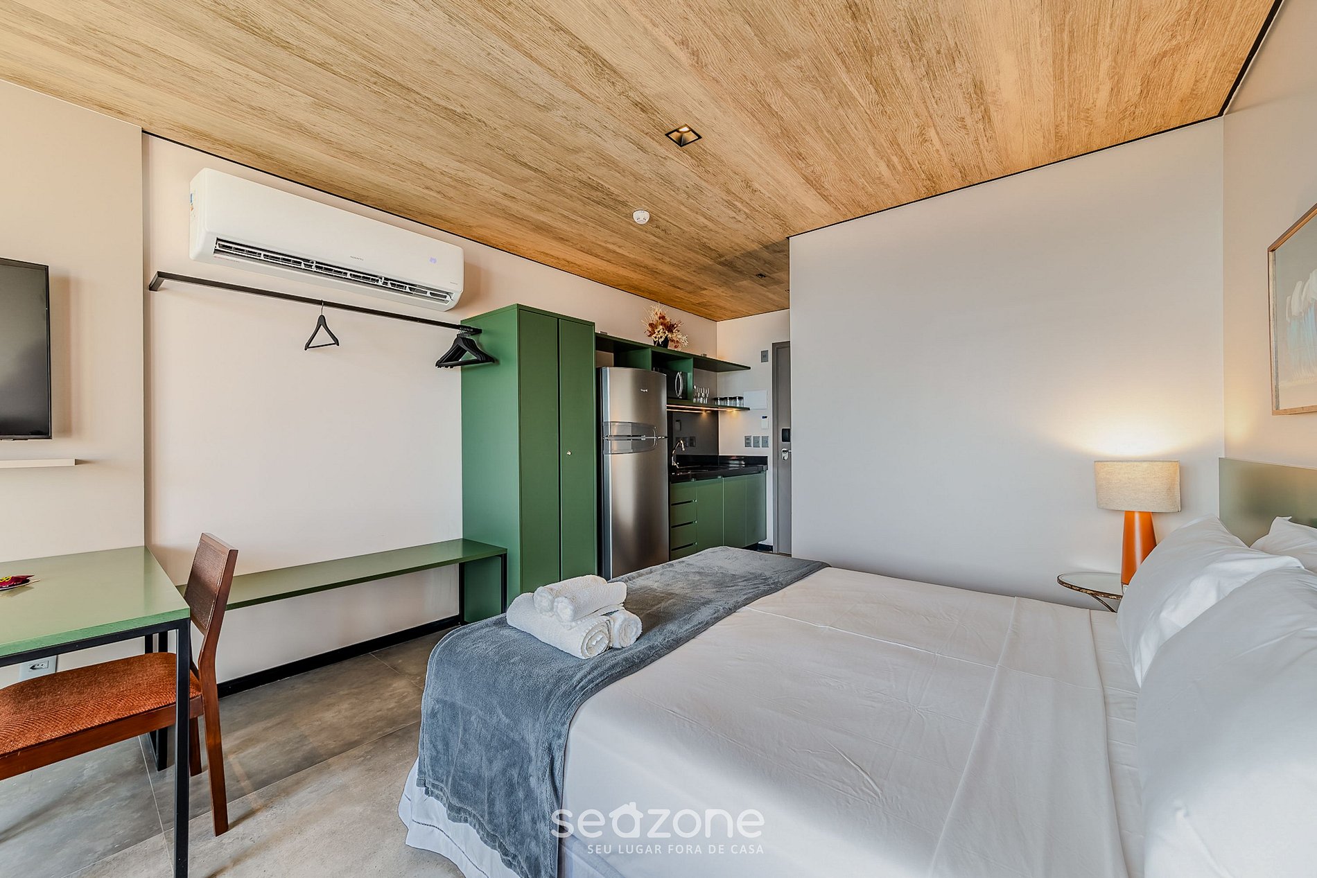- Roupas de cama e banho de qualidade hoteleira (roupas de cama e toalhas extras são cobrados pela Seazone);