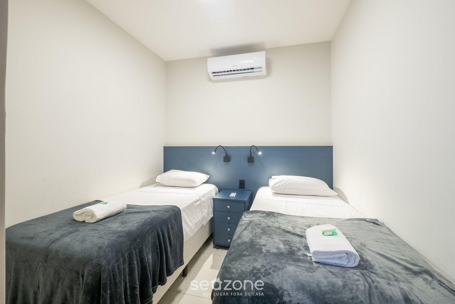 - Quarto com 2 camas de solteiro, armário e ar condicionado;