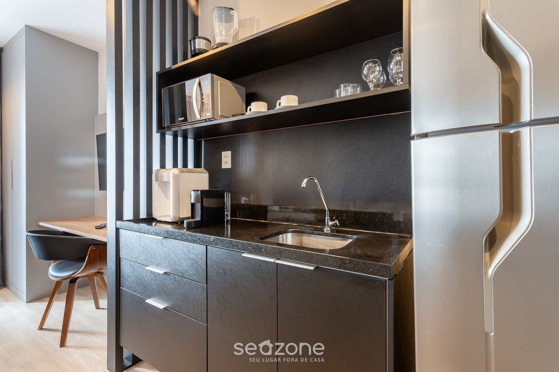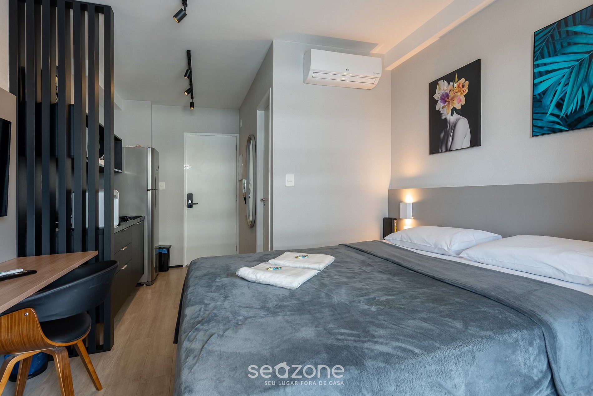 - Estúdio com 1 cama de casal queen size, smart TV, armário e ar-condicionado;