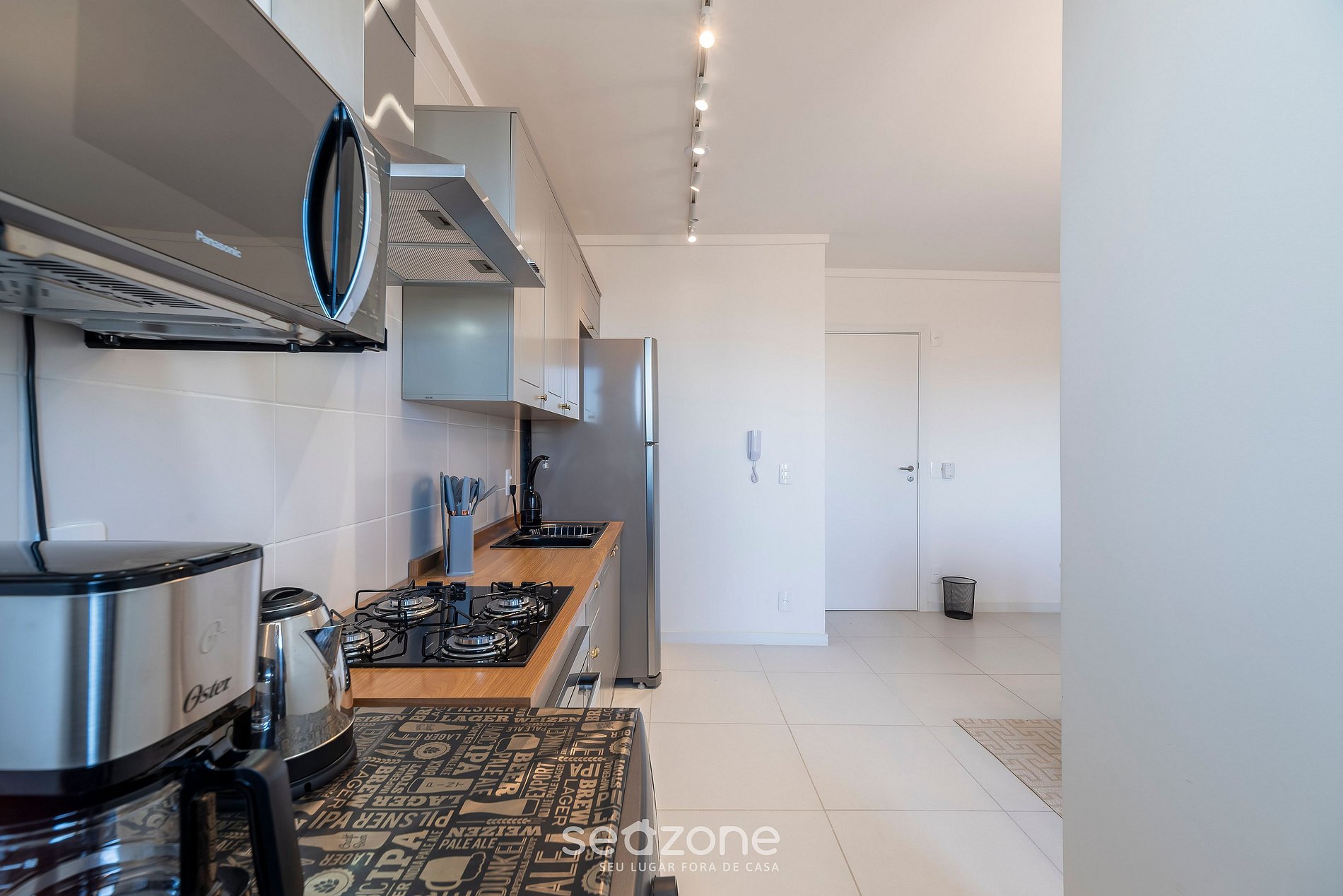 - Cozinha completa com geladeira, fogão cooktop, forno elétrico, micro-ondas, sanduicheira, cafeteira elétrica, chaleira elétrica, liquidificador, taças de vinho, panelas, louças e utensílios;