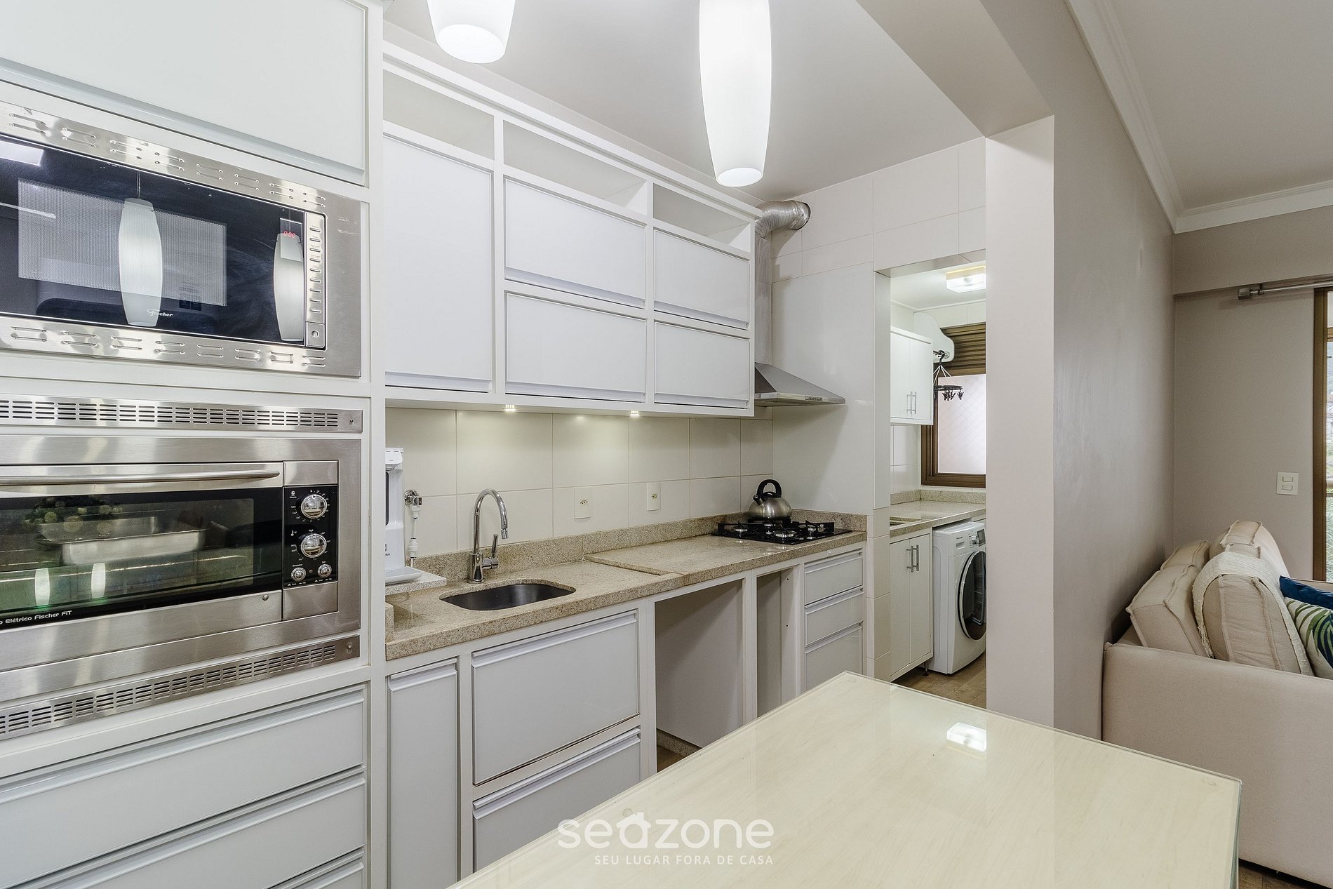 - Cozinha completa com geladeira, fogão cooktop, airfryer, forno elétrico, micro-ondas, sanduicheira, cafeteira, chaleira elétrica, liquidificador, taças de vinho, panelas, louças e utensílios;