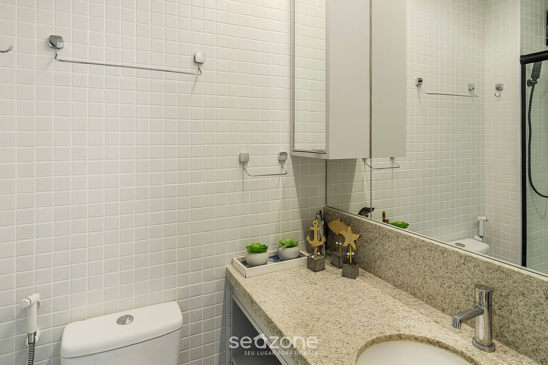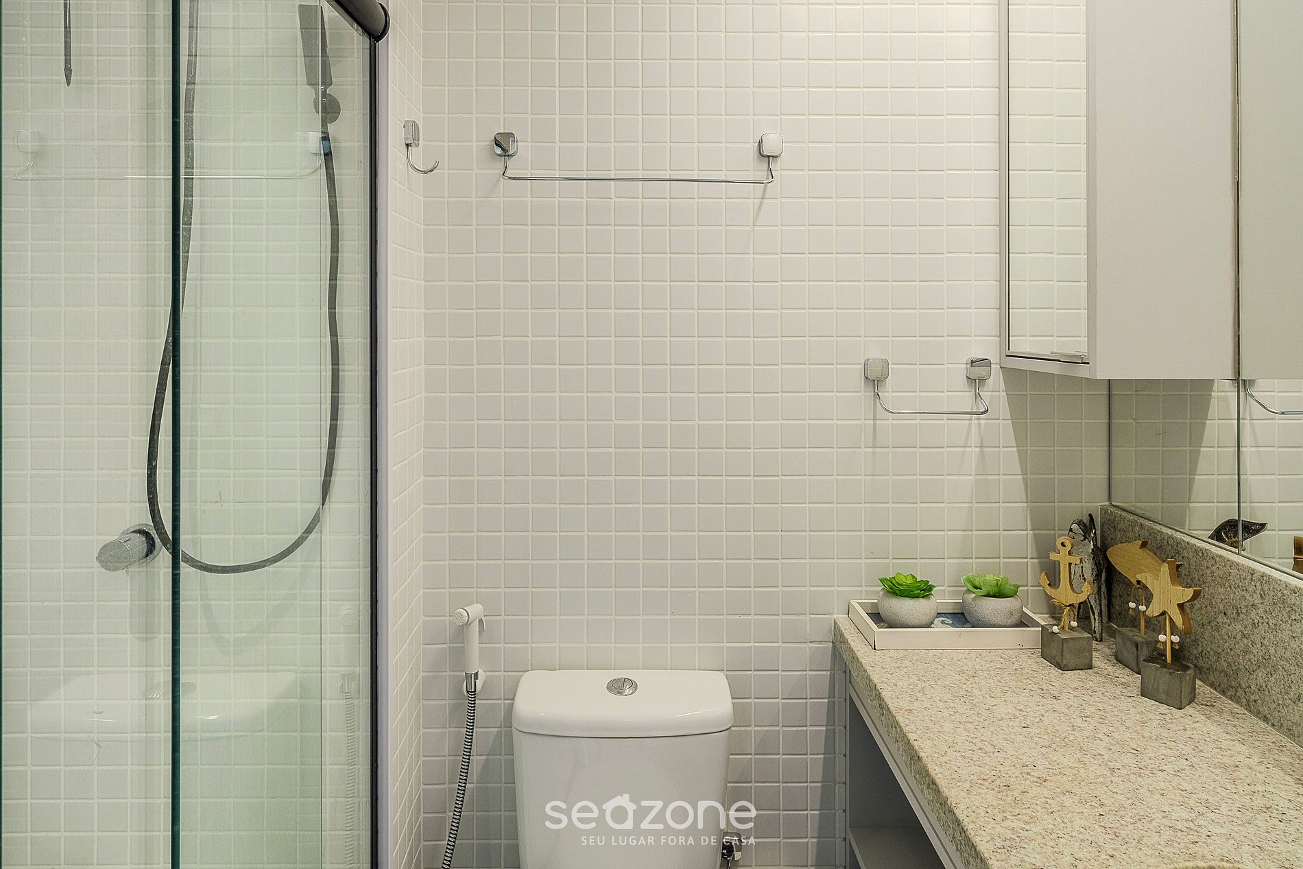 - Roupas de cama/banho e limpeza extras são solicitadas e pagas à parte, direto com a Seazone;
