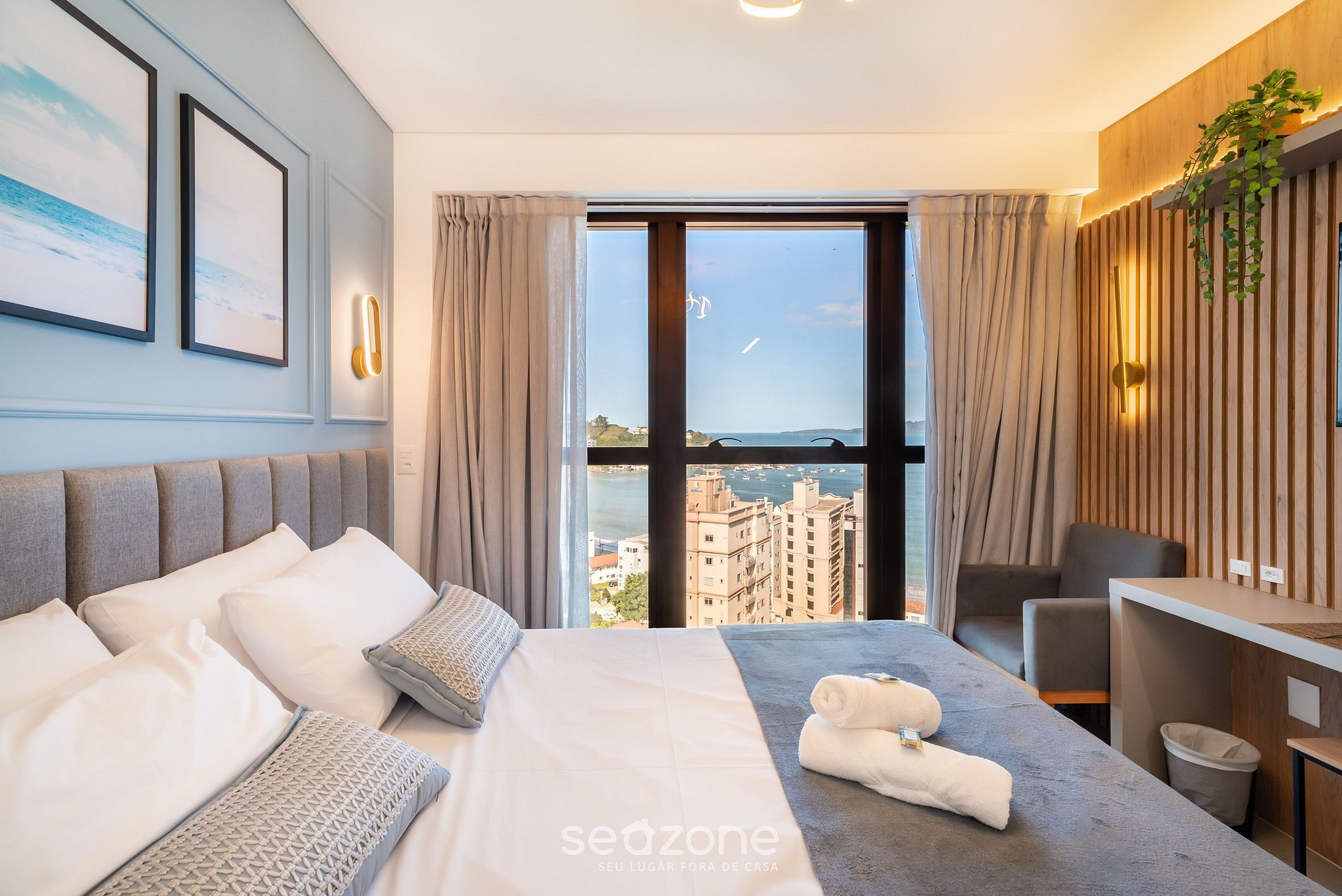 - Roupas de cama e banho de qualidade hoteleira (roupas de cama e toalhas extras são cobrados pela Seazone);