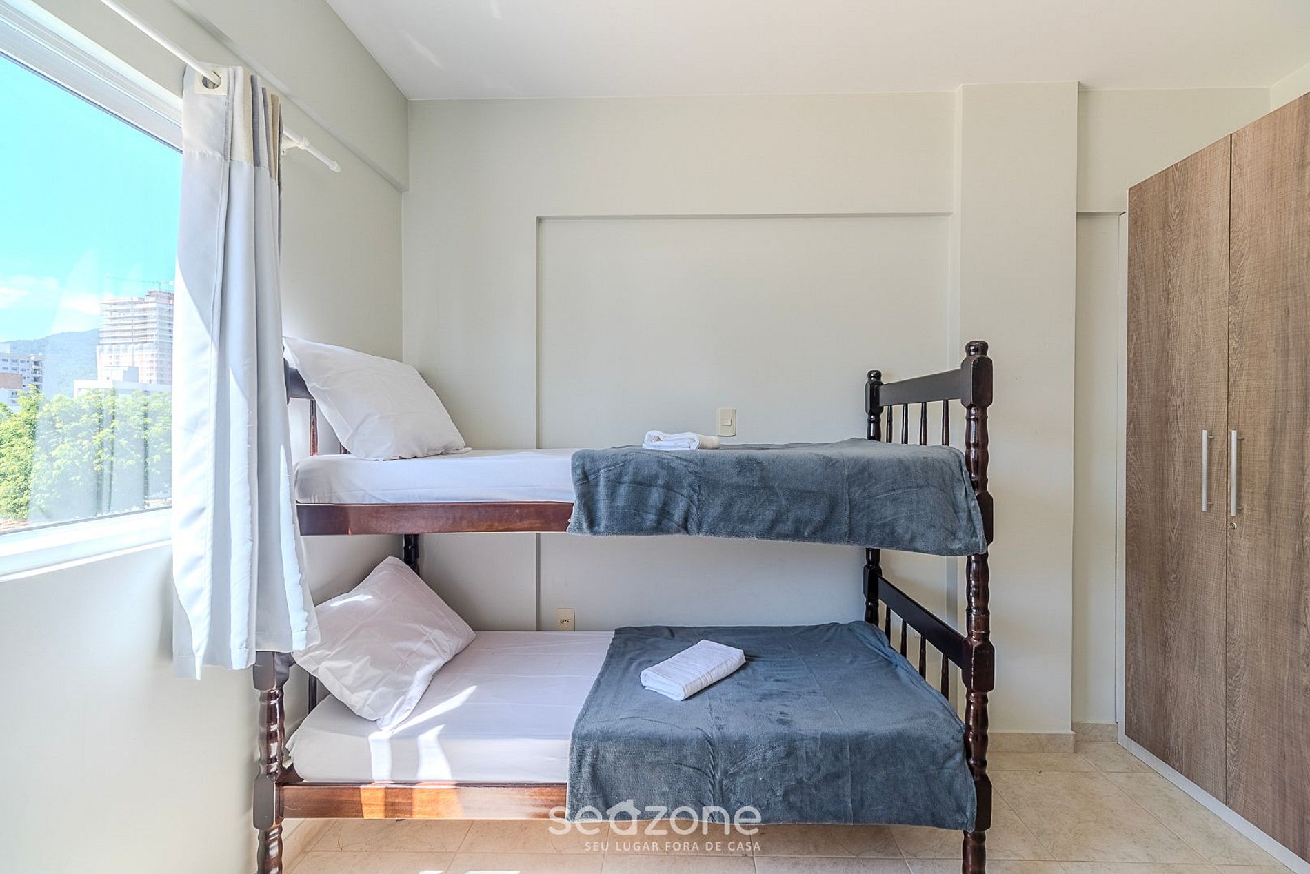 - 1 Quarto com beliche, cortinas blackout, armário e ar-condicionado;