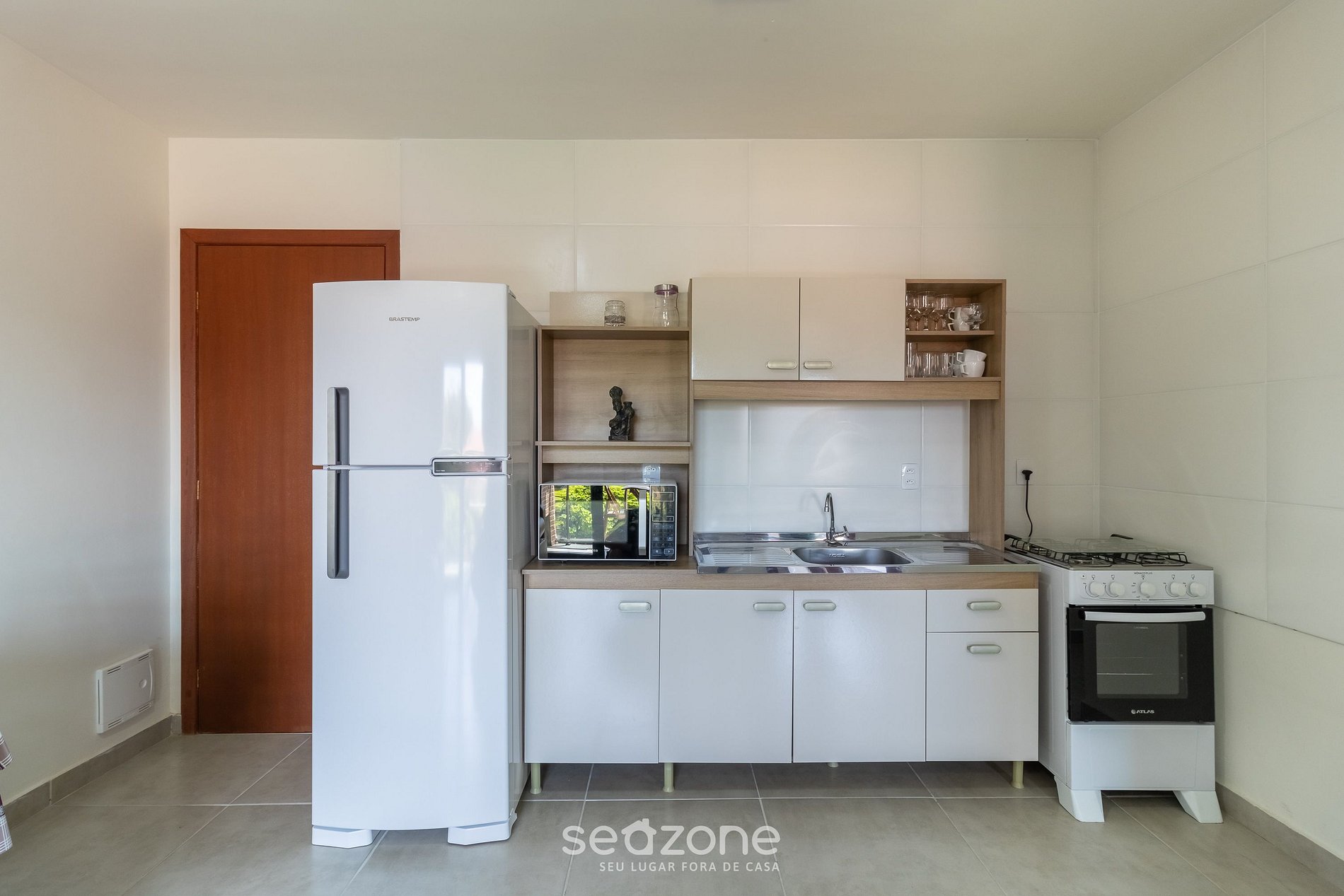 - Cozinha completa com geladeira, fogão, forno, micro-ondas, sanduicheira, kit café (funil, garrafa térmica), chaleira, liquidificador, taças de vinho, panelas, louças e utensílios;