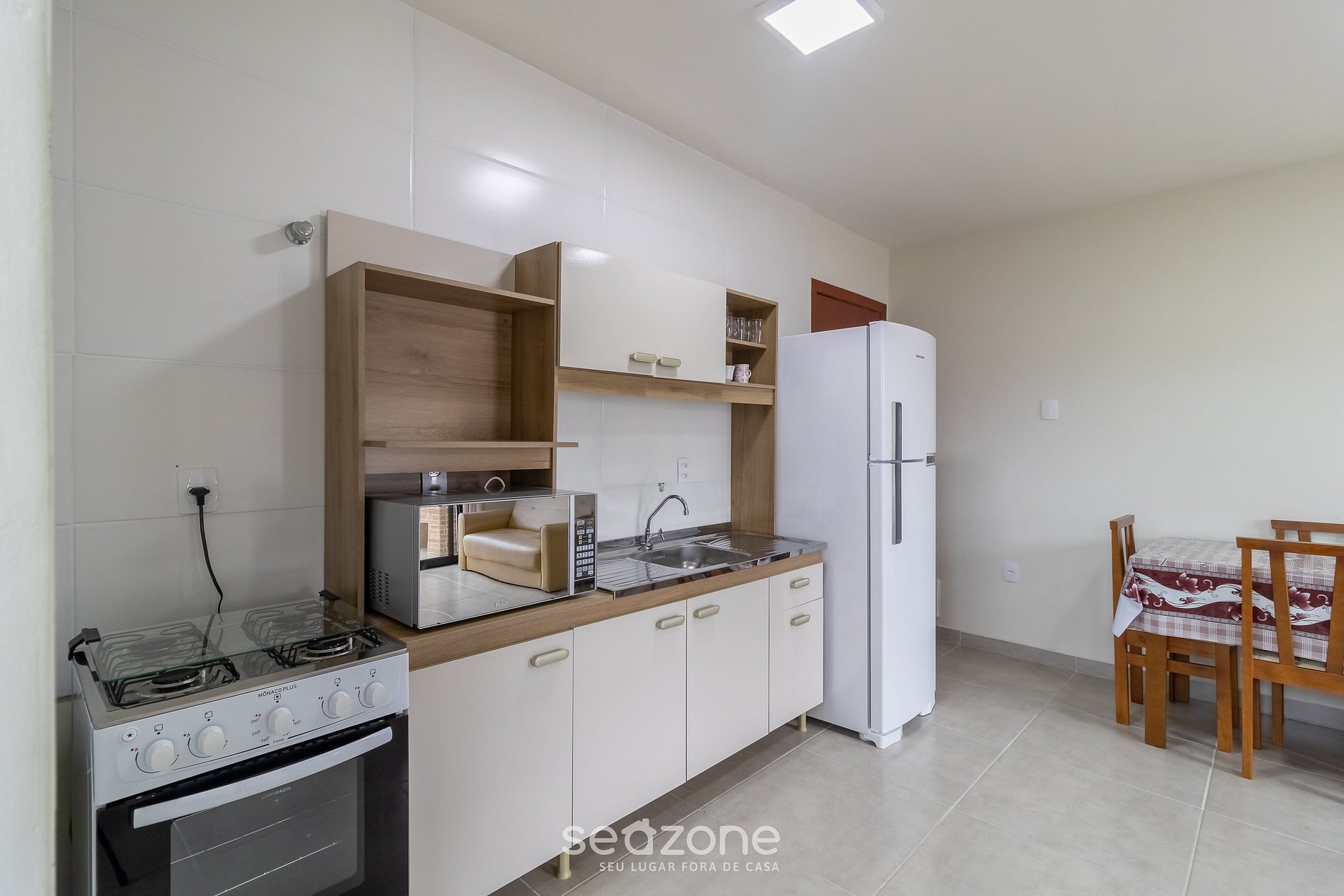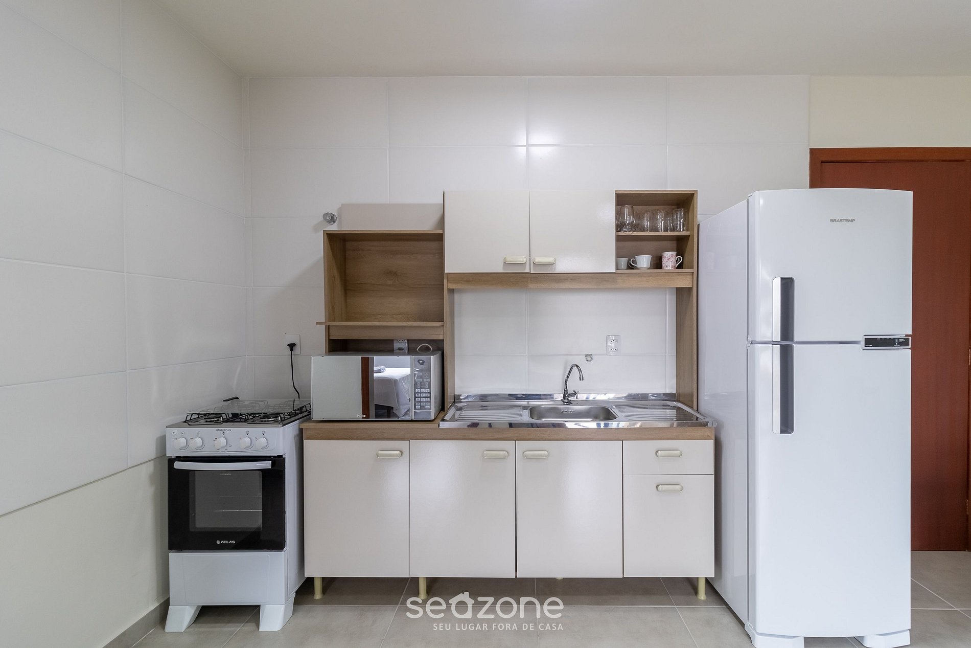 - Cozinha completa com geladeira, fogão e forno a gás, micro-ondas, sanduicheira, kit café (funil, garrafa térmica, cafeteira), chaleira elétrica, liquidificador, taças de vinho, panelas, louças e utensílios;