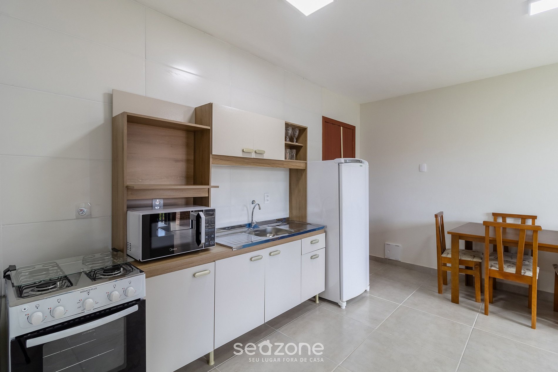 - Cozinha completa com geladeira, fogão e forno a gás, micro-ondas, sanduicheira, kit café (funil, garrafa térmica), chaleira elétrica, liquidificador, taças de vinho, panelas, louças e utensílios;