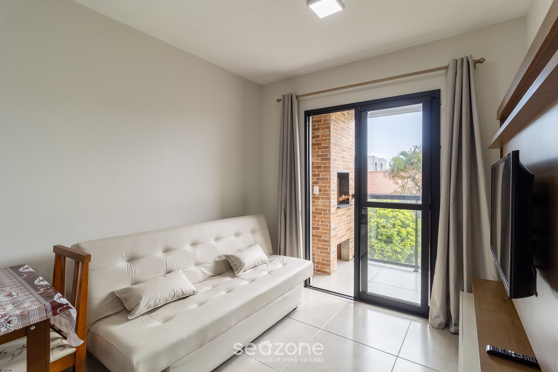 Relaxe neste apartamento nos Ingleses do Rio Vermelho, Florianópolis, a 6 minutos de carro da Praia dos Ingleses. O espaço conta com sala aconchegante, cozinha equipada, sacada privativa com churrasqueira e quarto climatizado. Com garagem no condomínio e perto de restaurantes, é perfeito para explorar a região.
