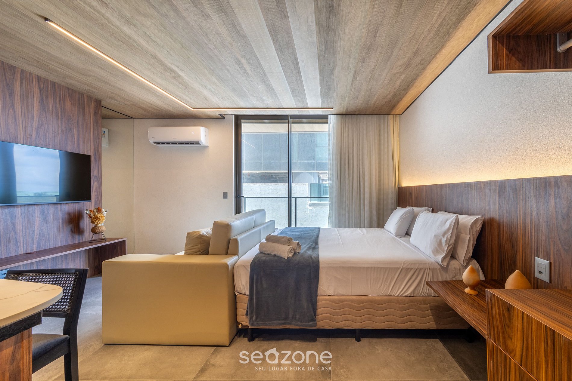 - Roupas de cama e banho de qualidade hoteleira (roupas de cama e toalhas extras são cobrados pela Seazone);