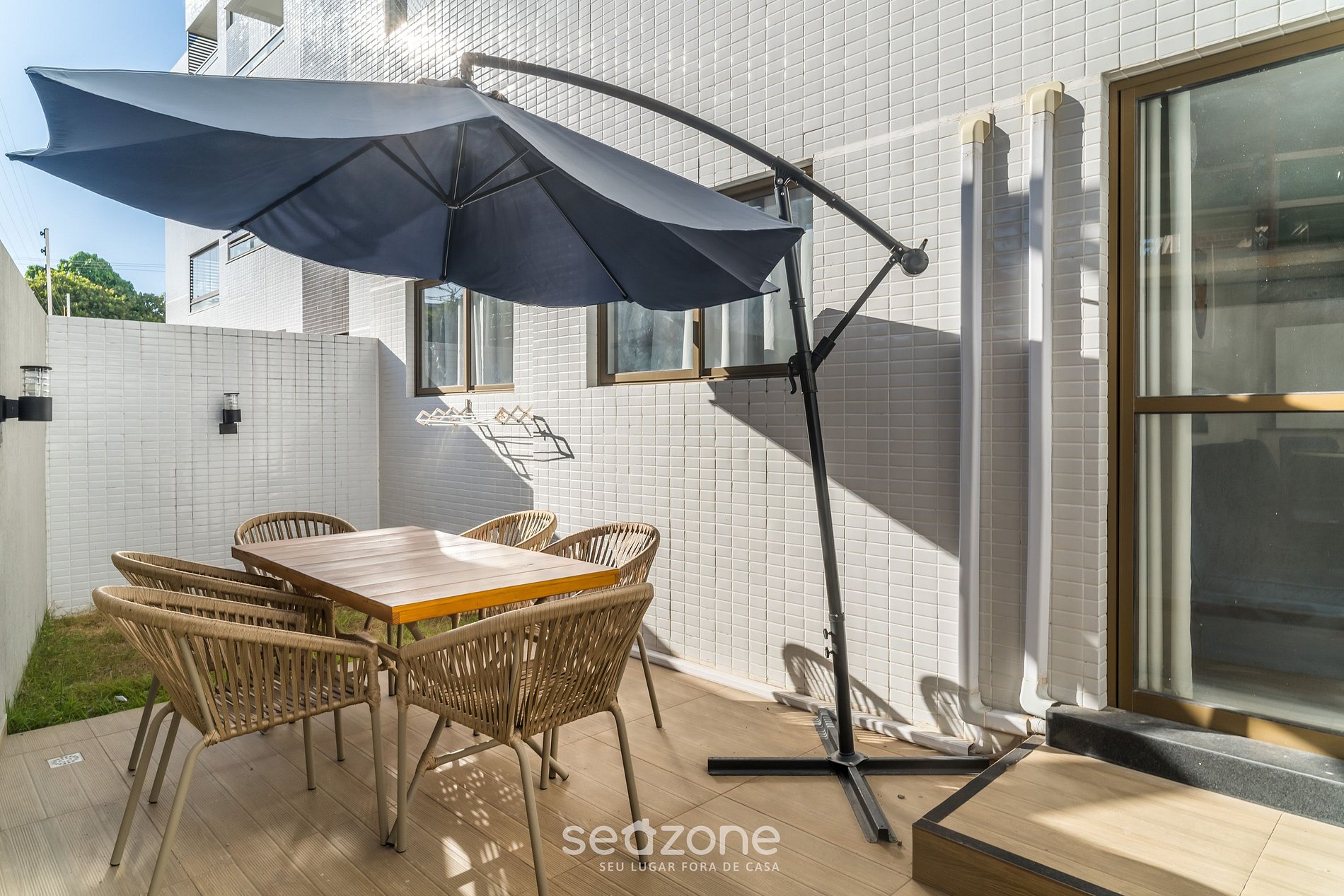 - Roupas de cama/banho e limpeza extras são solicitadas e pagas à parte, direto com a Seazone;