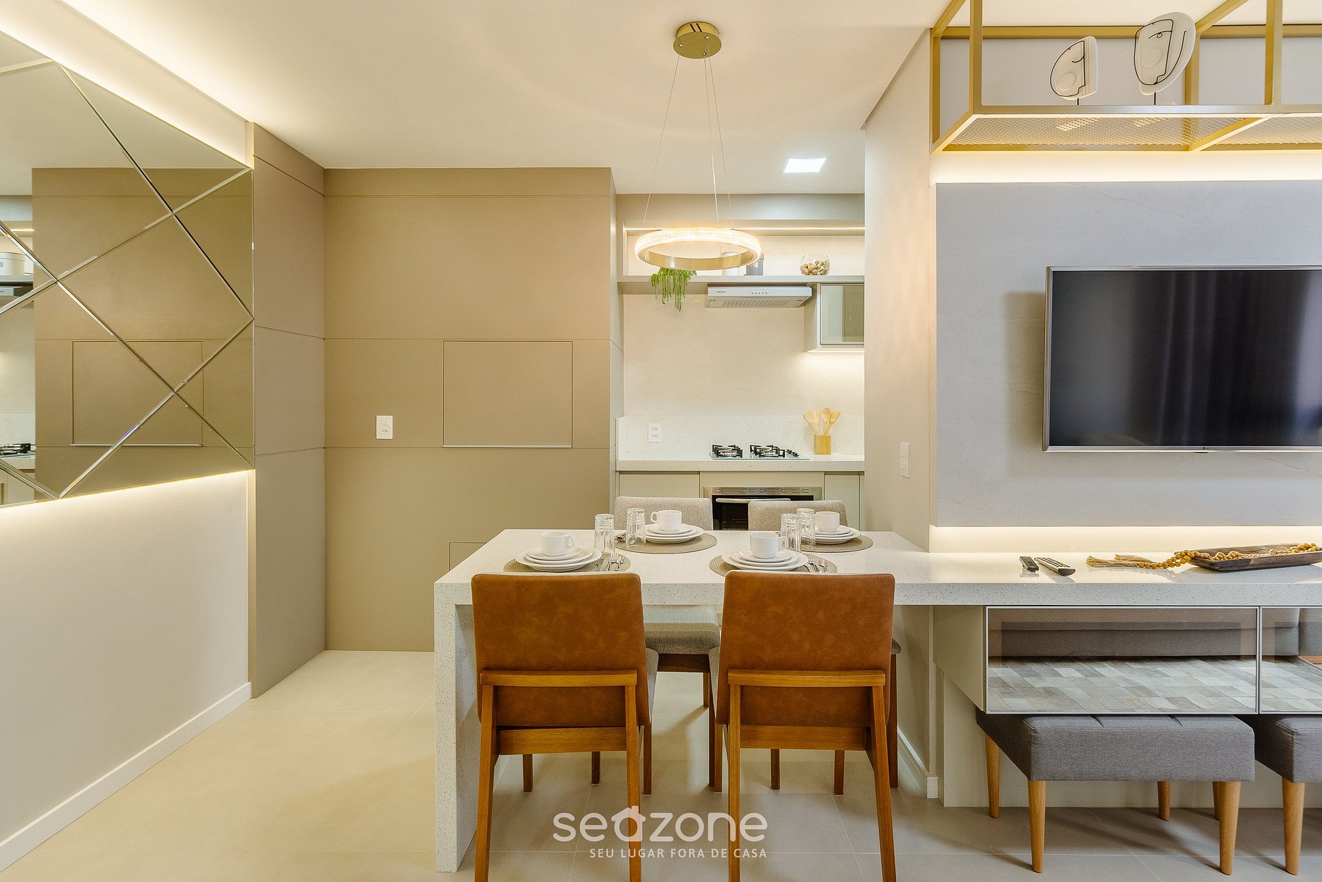 - Espaço para jantar com bancada e 4 cadeiras;