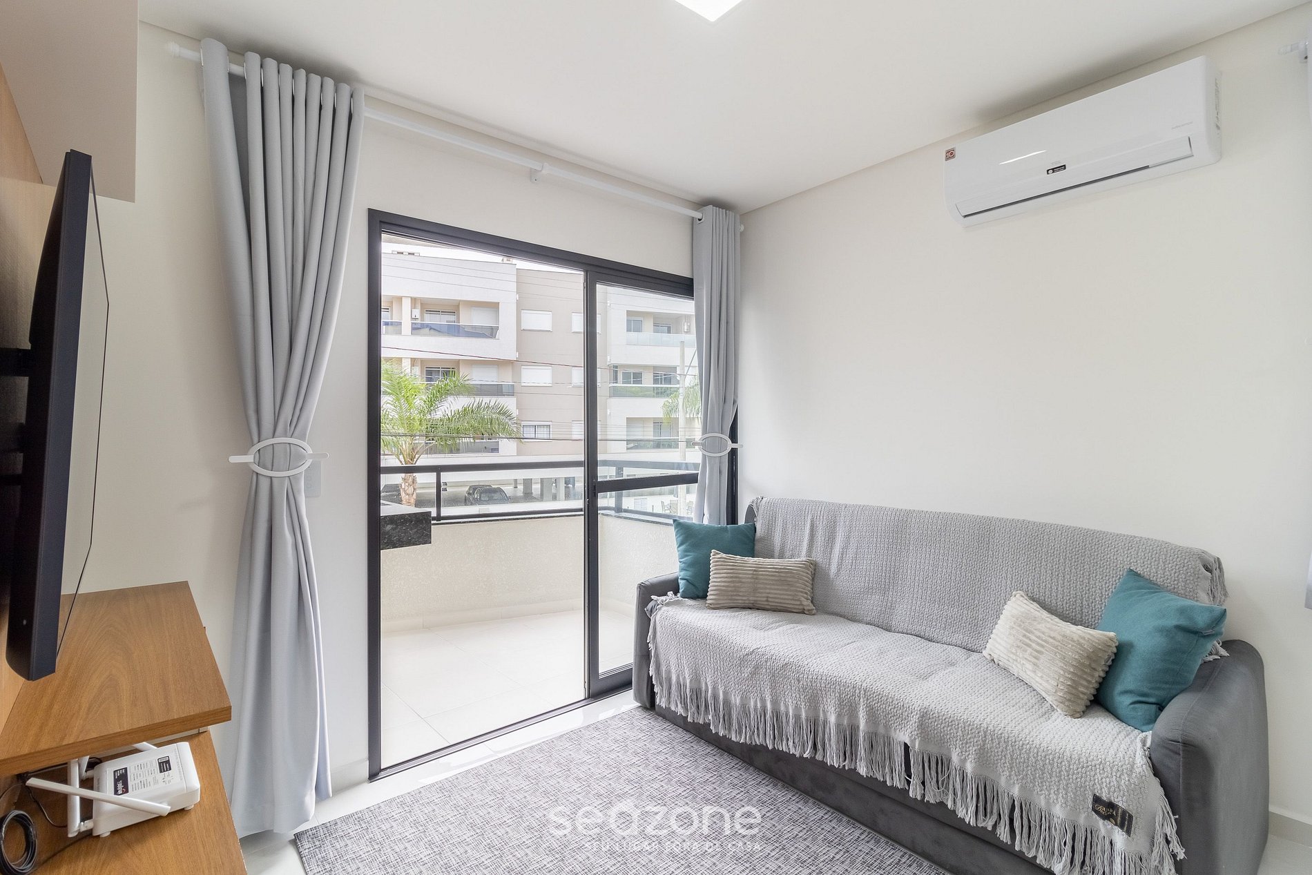 - Roupas de cama e banho de padrão hoteleiro, garantindo conforto e qualidade durante a sua estadia (enxoval extra mediante cobrança adicional pela Seazone);