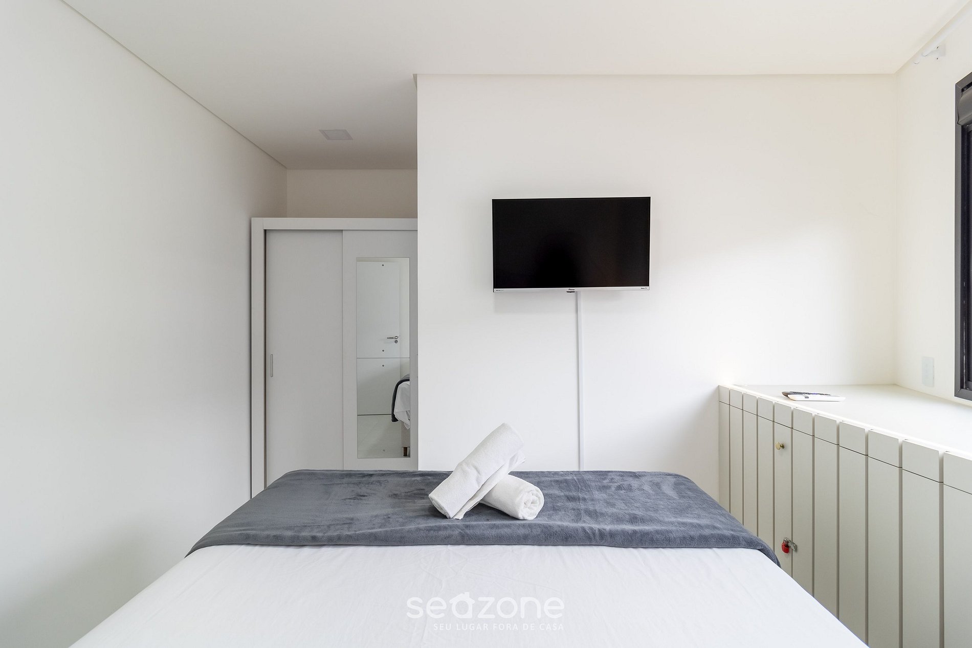 - Roupas de cama e banho de padrão hoteleiro, garantindo conforto e qualidade durante a sua estadia (enxoval extra mediante cobrança adicional pela Seazone);