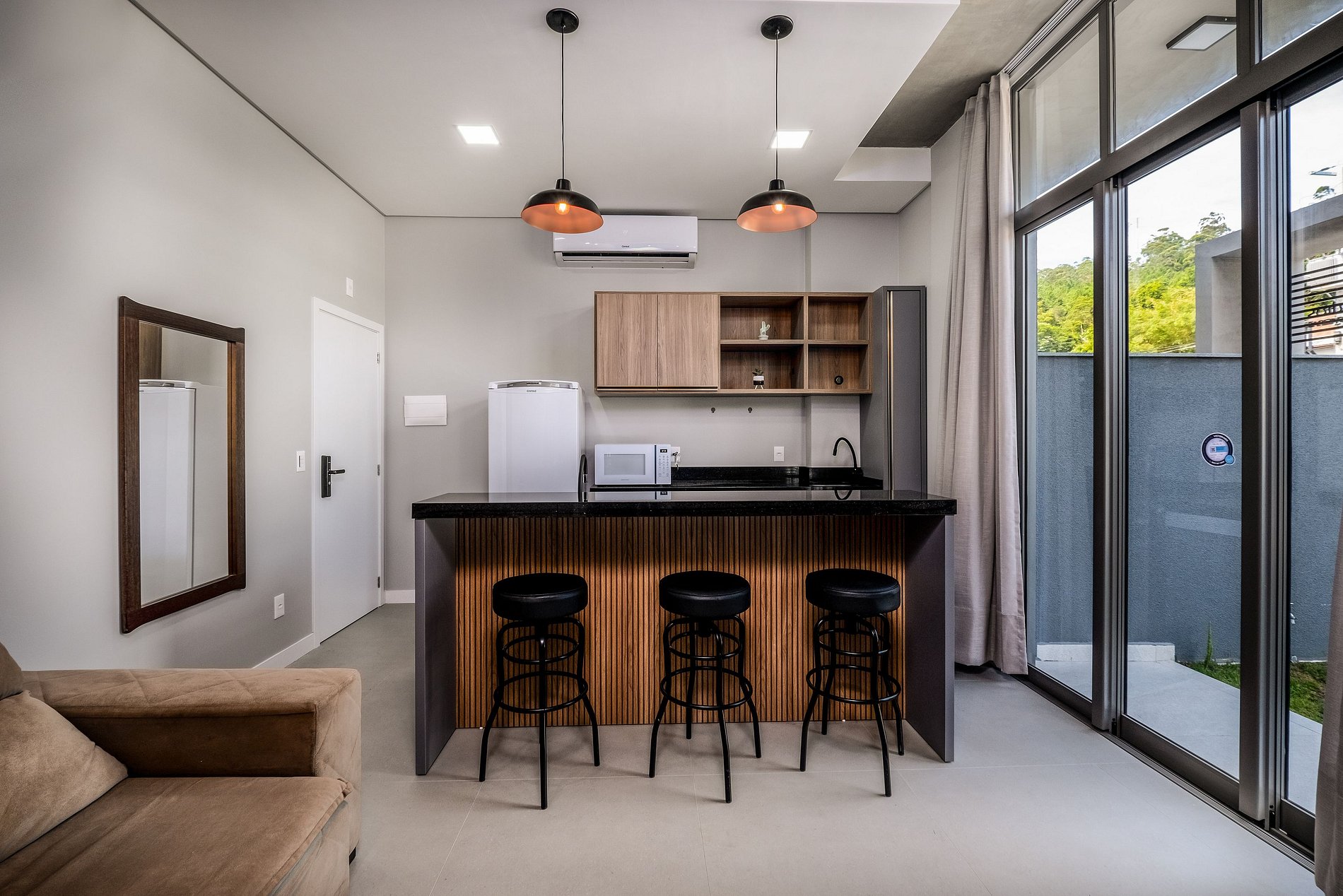 O espaço é novo e foi planejado com um design moderno e funcional que busca oferecer uma experiência completa à sua estada em Florianópolis, seja para viagens a lazer ou trabalho.