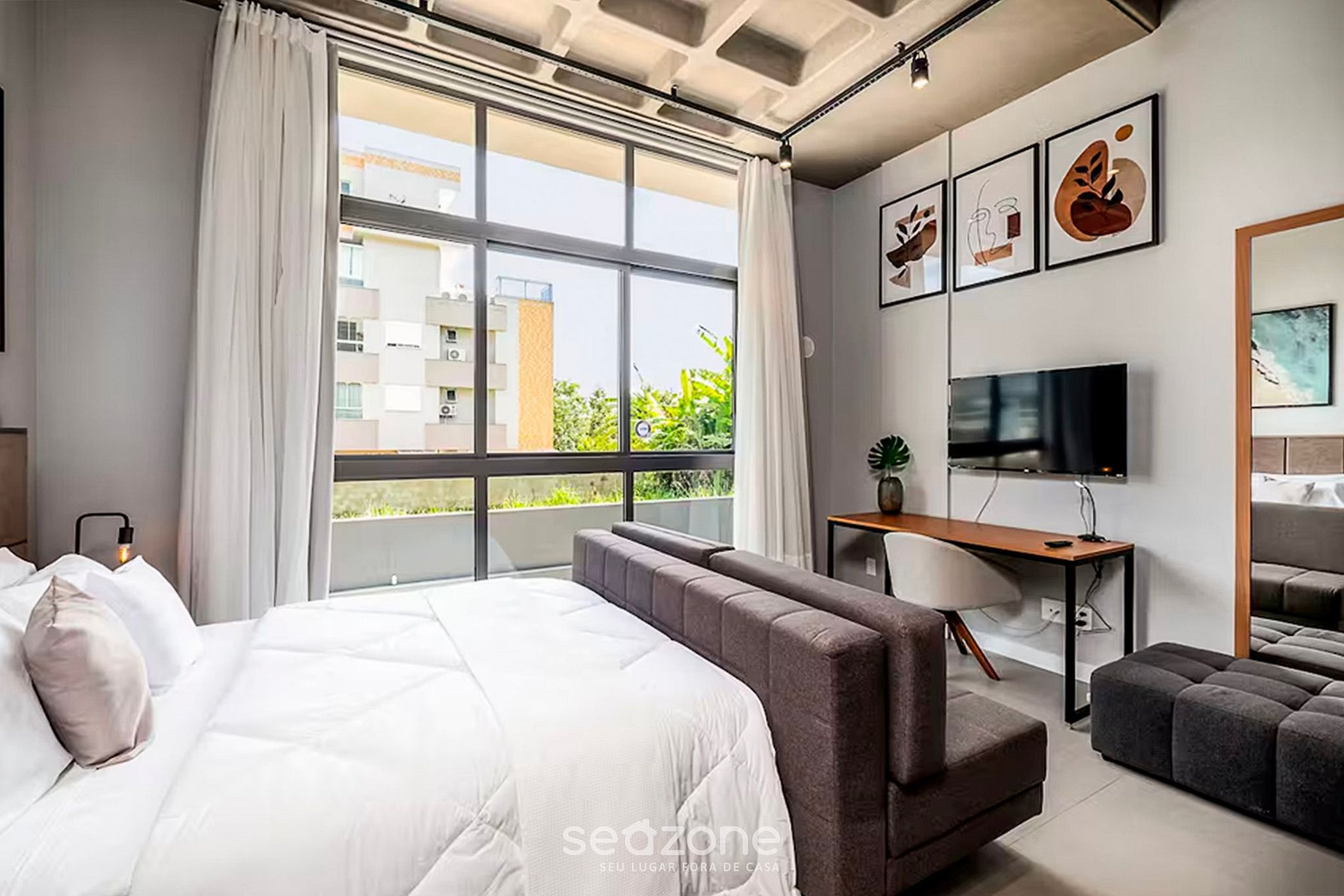 O espaço é novo e foi planejado com um design moderno e funcional que busca oferecer uma experiência completa à sua estada em Florianópolis, seja para viagens a lazer ou trabalho.