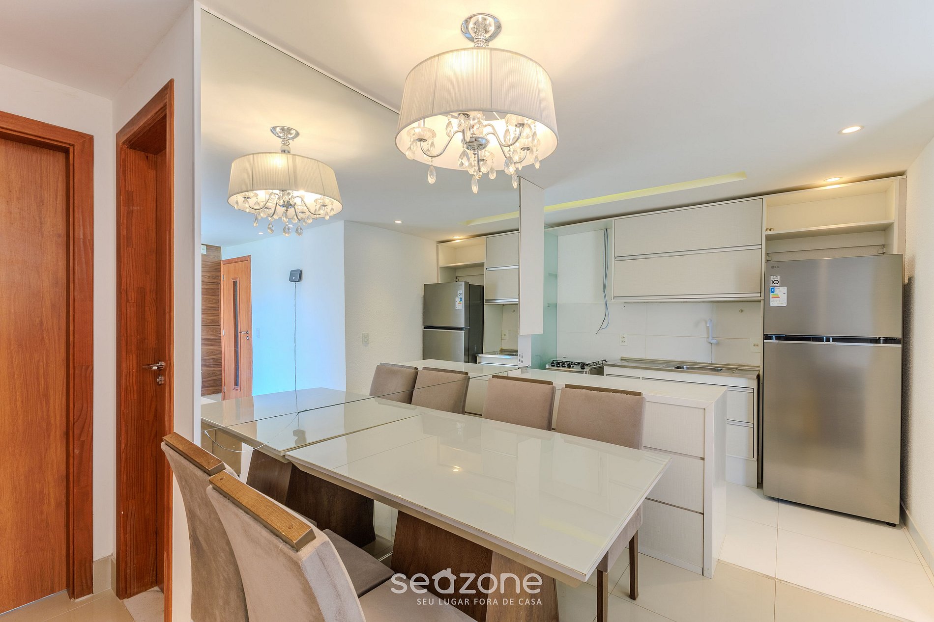 - Espaço para jantar com mesa e 4 cadeiras;