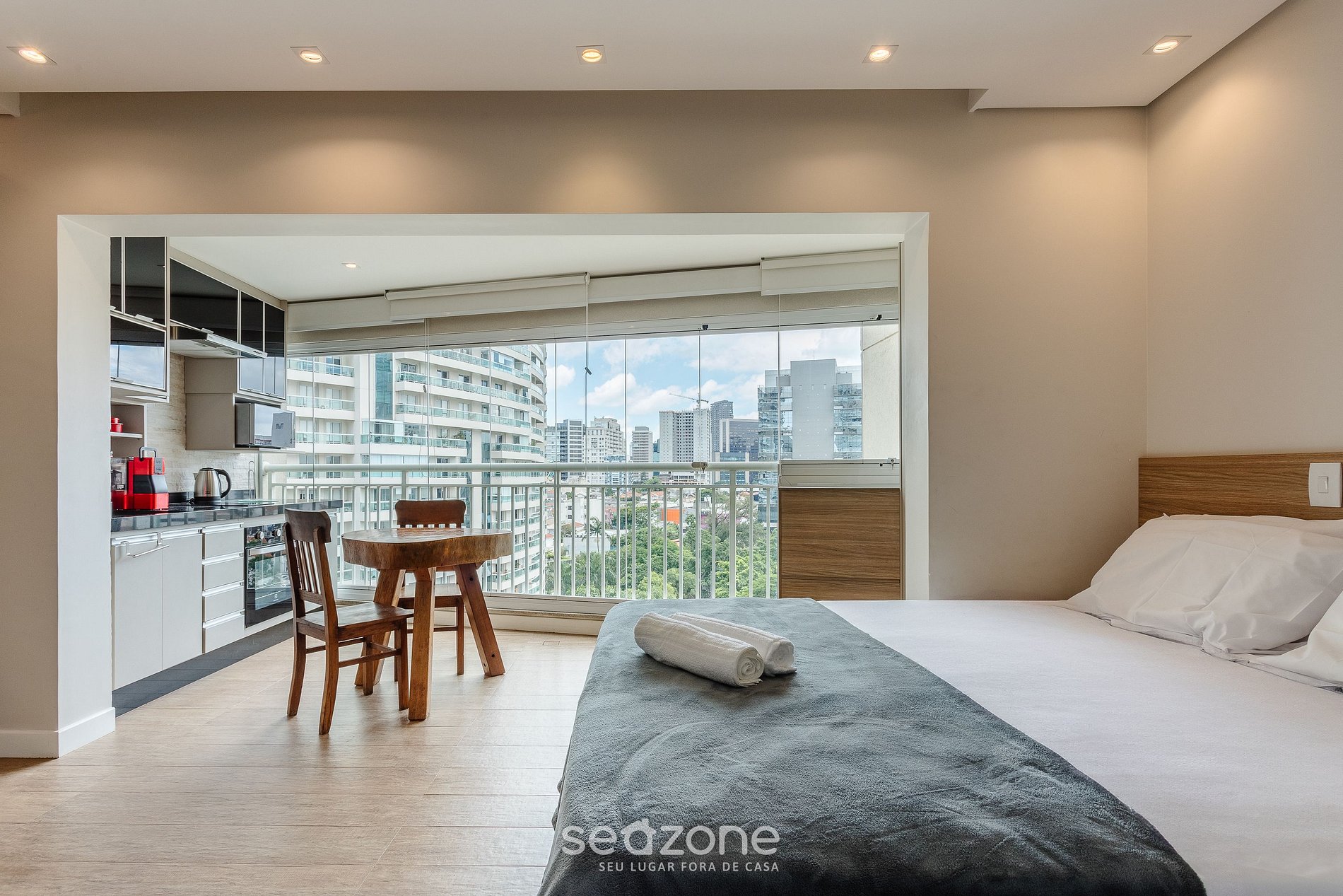 - Roupas de cama e banho de qualidade hoteleira (roupas de cama e toalhas extras são cobrados pela Seazone);