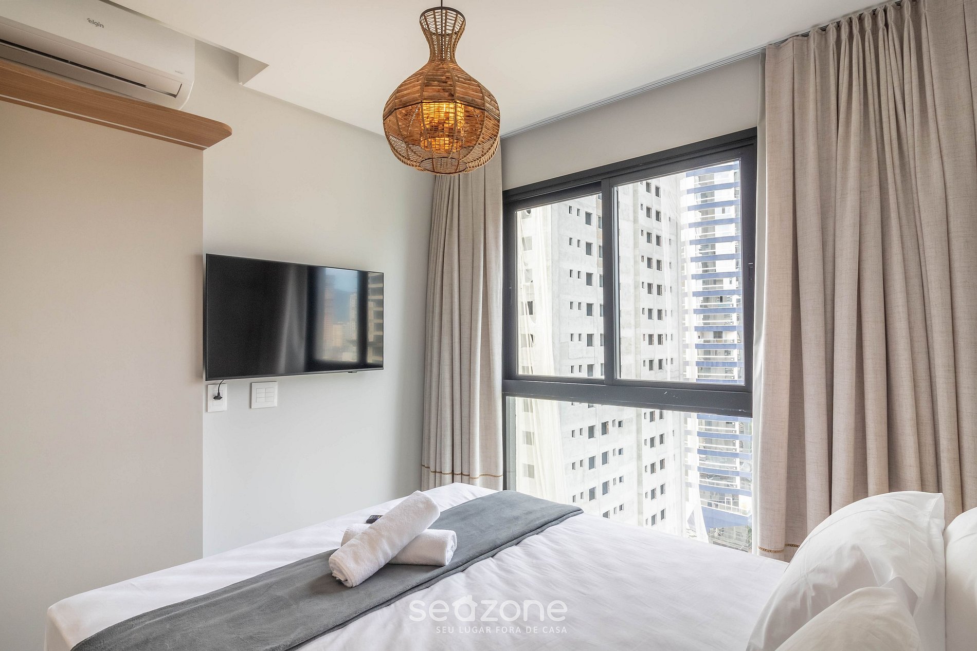 - Roupas de cama e banho de qualidade hoteleira (roupas de cama e toalhas extras são cobrados pela Seazone);