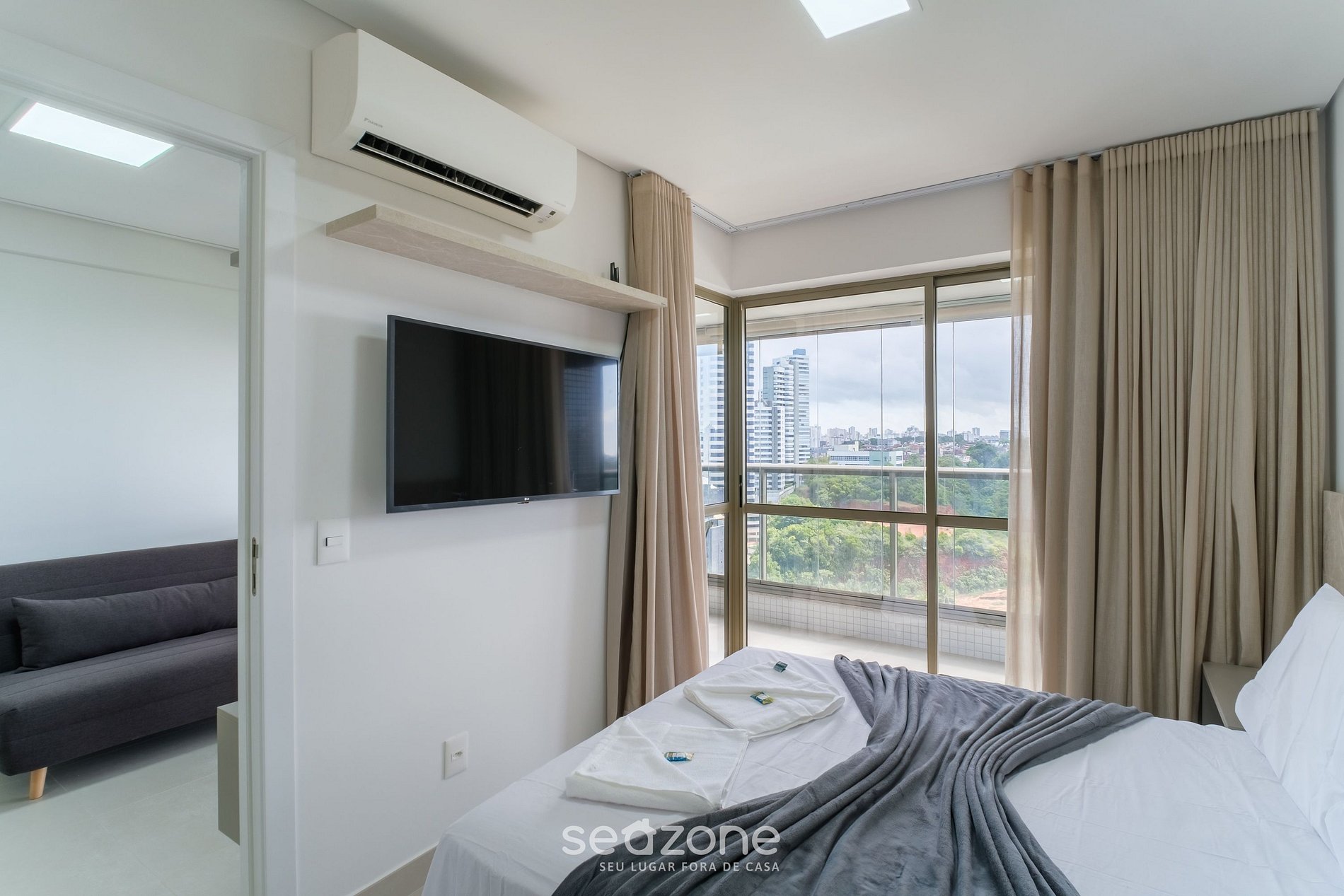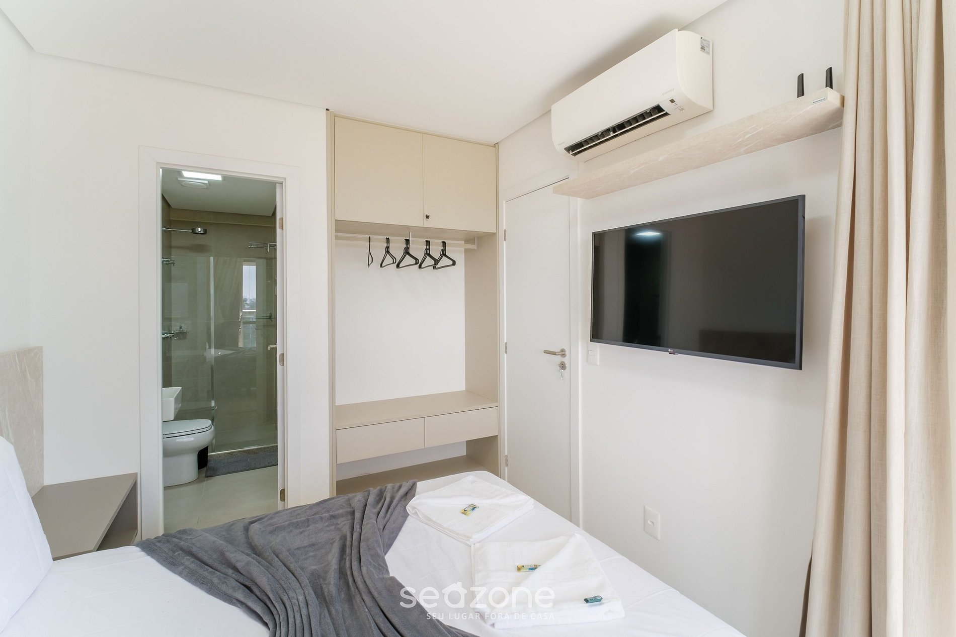 - Roupas de cama e banho de qualidade hoteleira (roupas de cama e toalhas extras são cobrados pela Seazone);