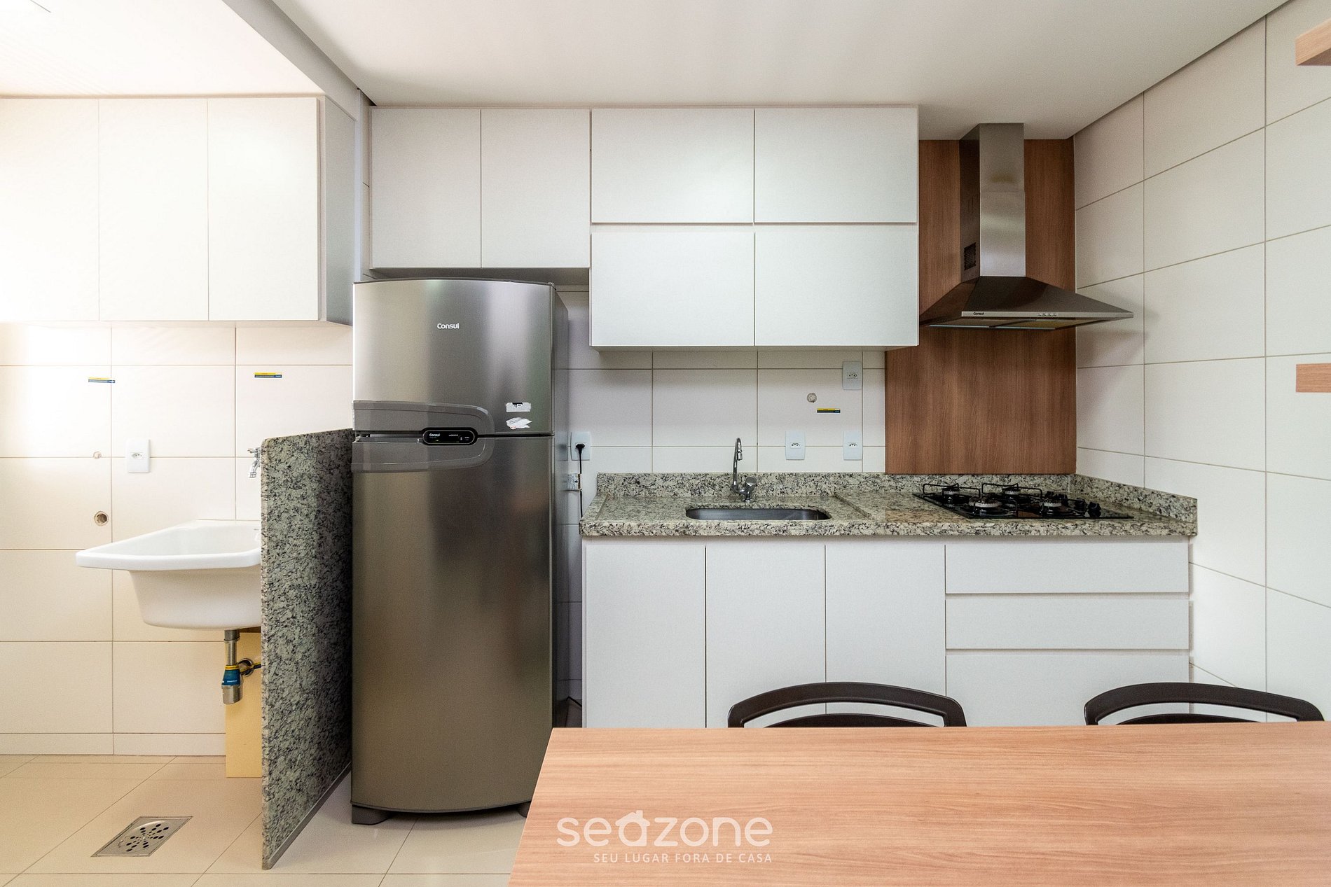 Tenha uma estadia completa neste flat moderno em Goiânia, Setor Bueno. Cozinha equipada, TV, Wi-Fi de alta velocidade e check-in sem chave e ar condicionado para você ter o máximo de conforto.