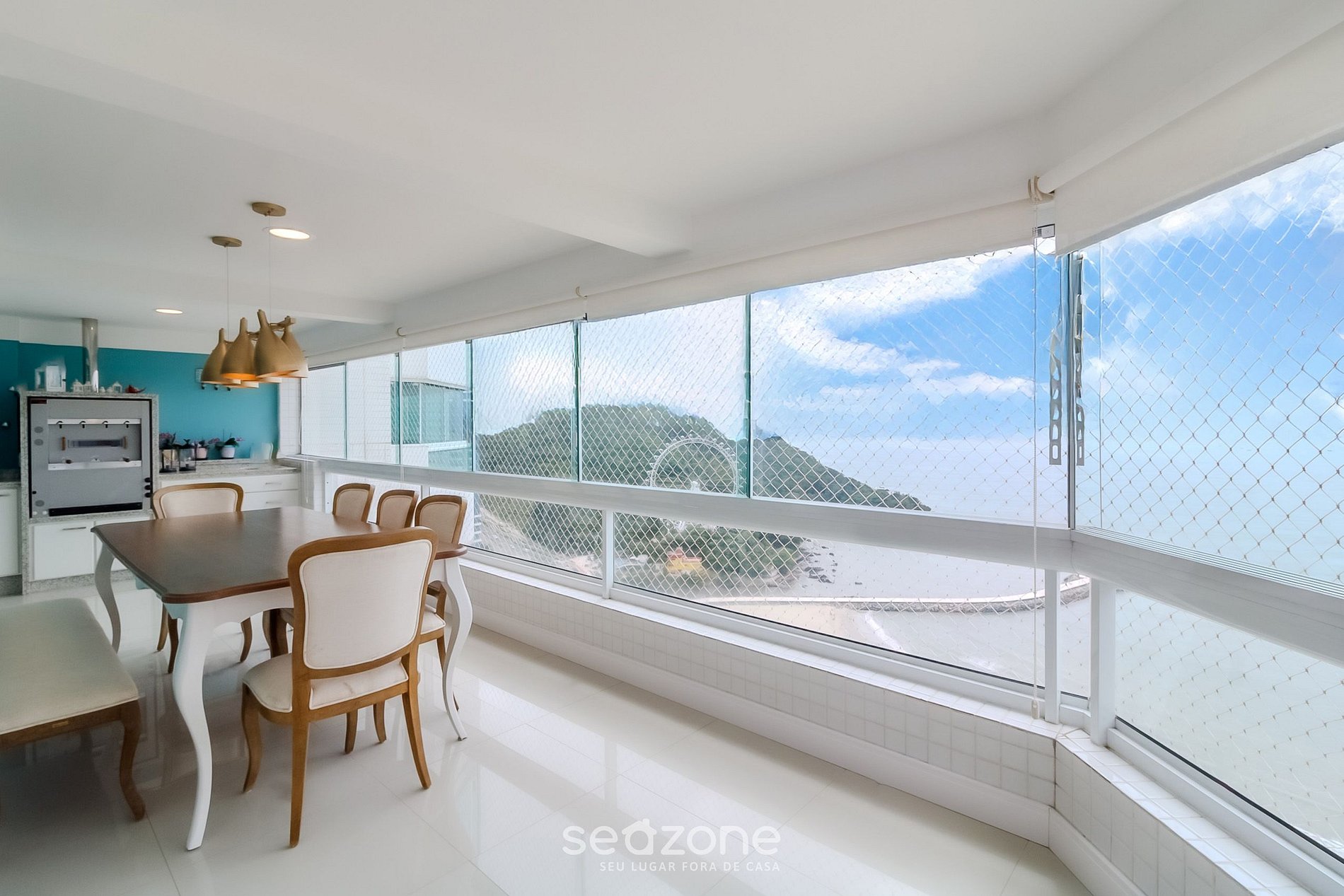 - Sacada fechada com mesa e 5 cadeiras e vista mar;