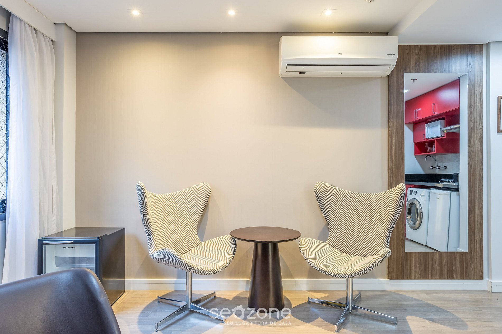 - Sala conjugada com o quarto, incluindo Smart TV e 02 poltronas.
