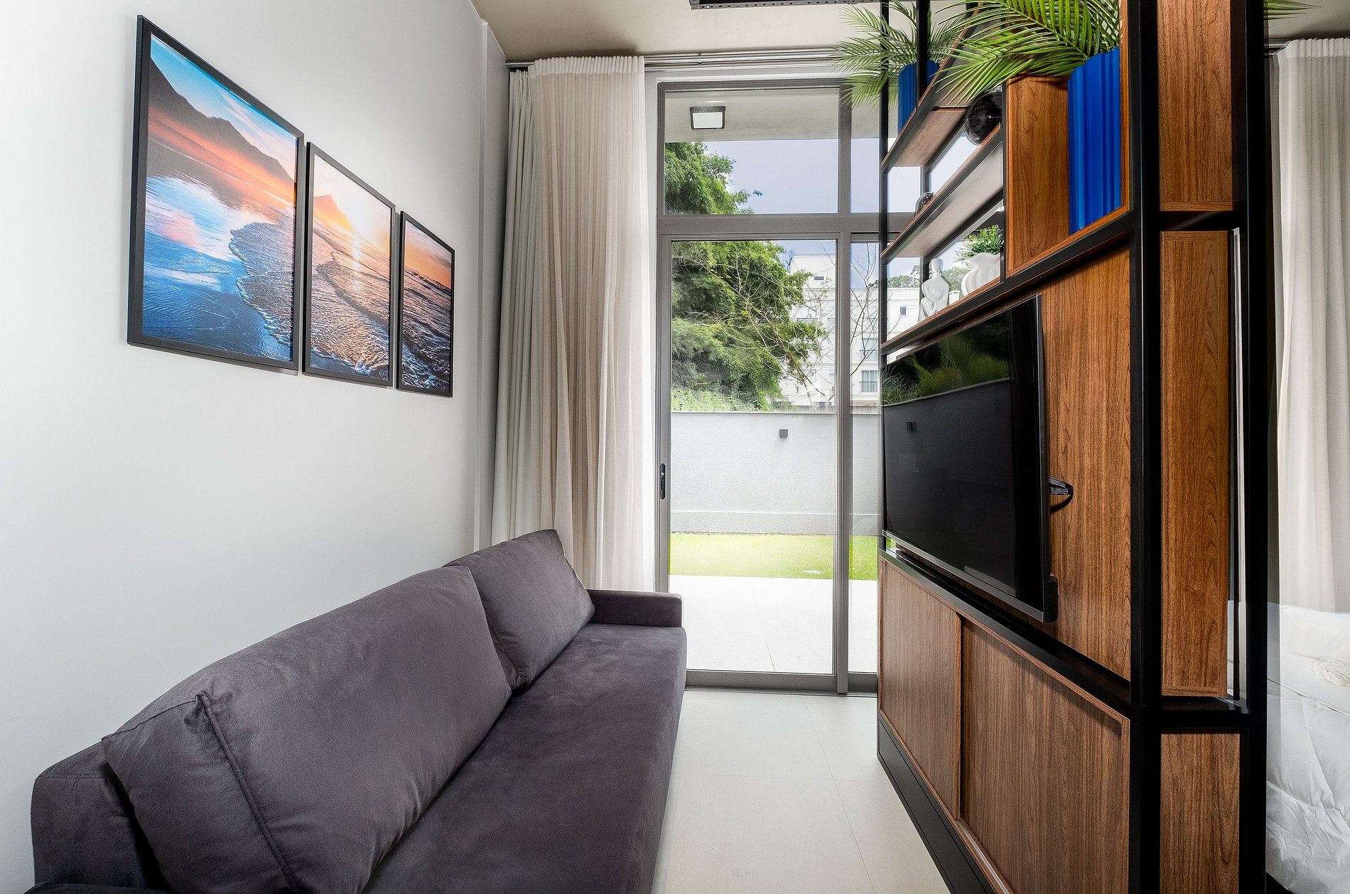 - Espaço em conceito aberto integrando ambientes de quarto, sala e cozinha;