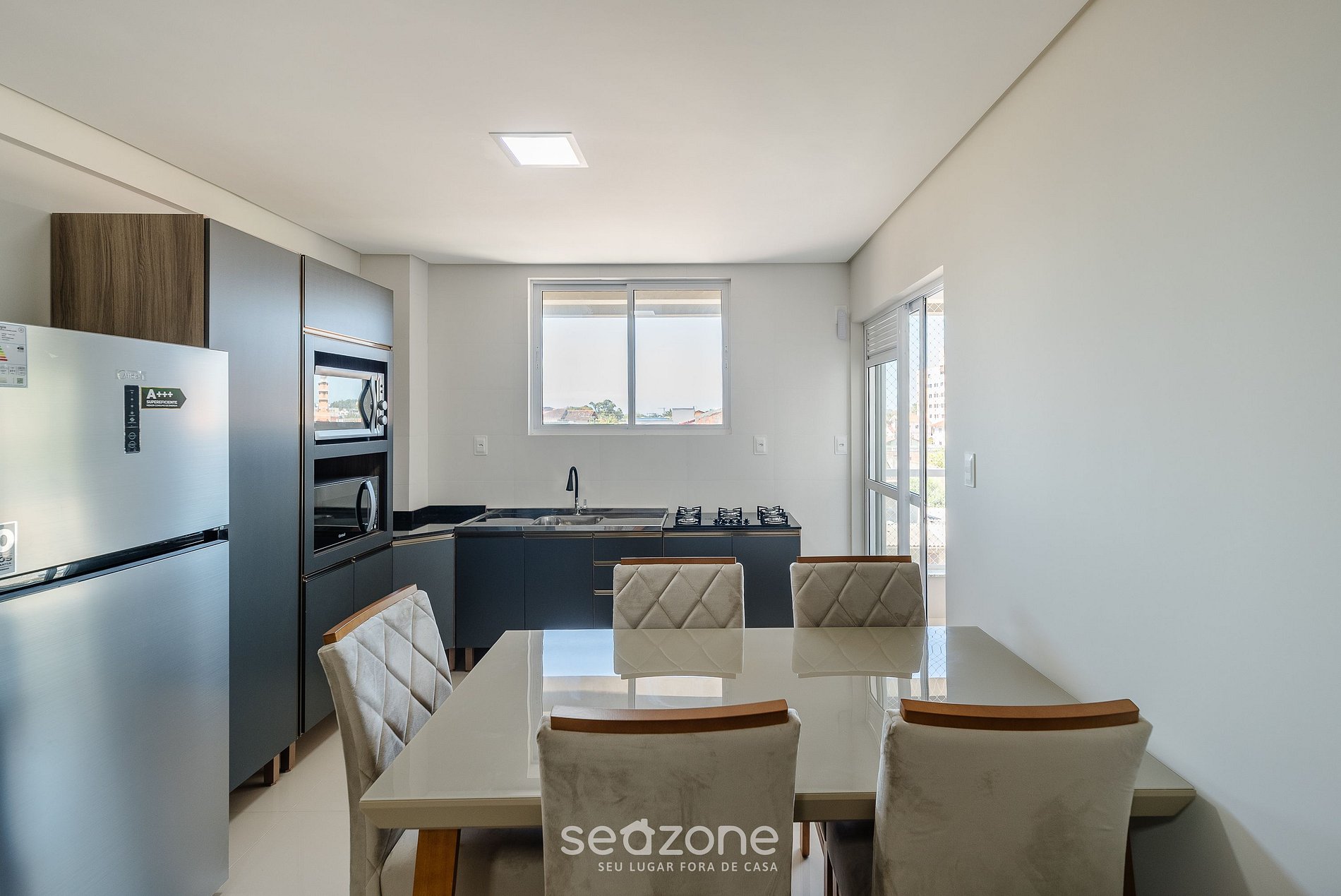 - Cozinha completa com geladeira, fogão cooktop, forno elétrico, micro-ondas, sanduicheira, kit café (funil, garrafa térmica), chaleira elétrica, liquidificador, taças de vinho, panelas, louças e utensílios;