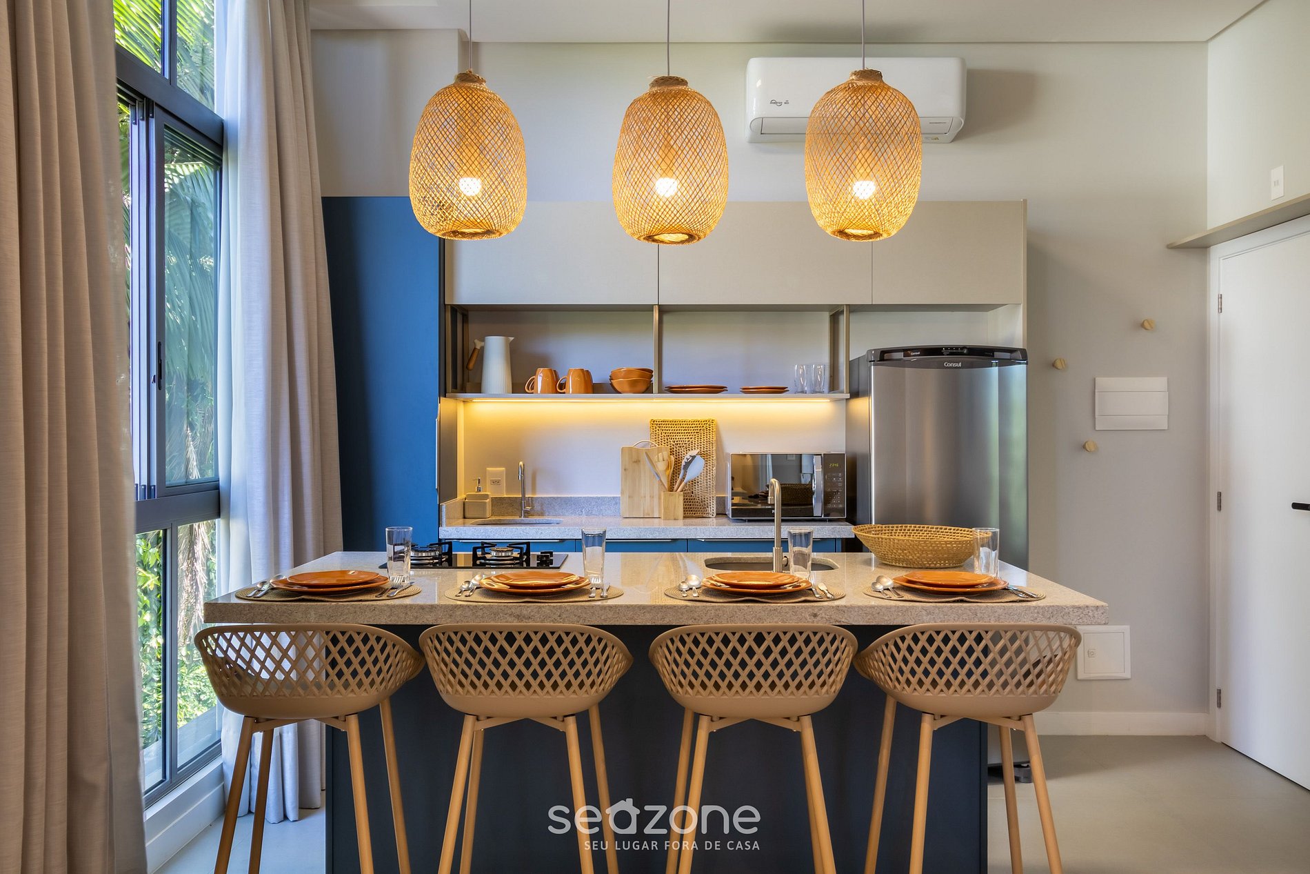 - Roupas de cama e banho de qualidade hoteleira (roupas de cama e toalhas extras são cobrados pela Seazone);