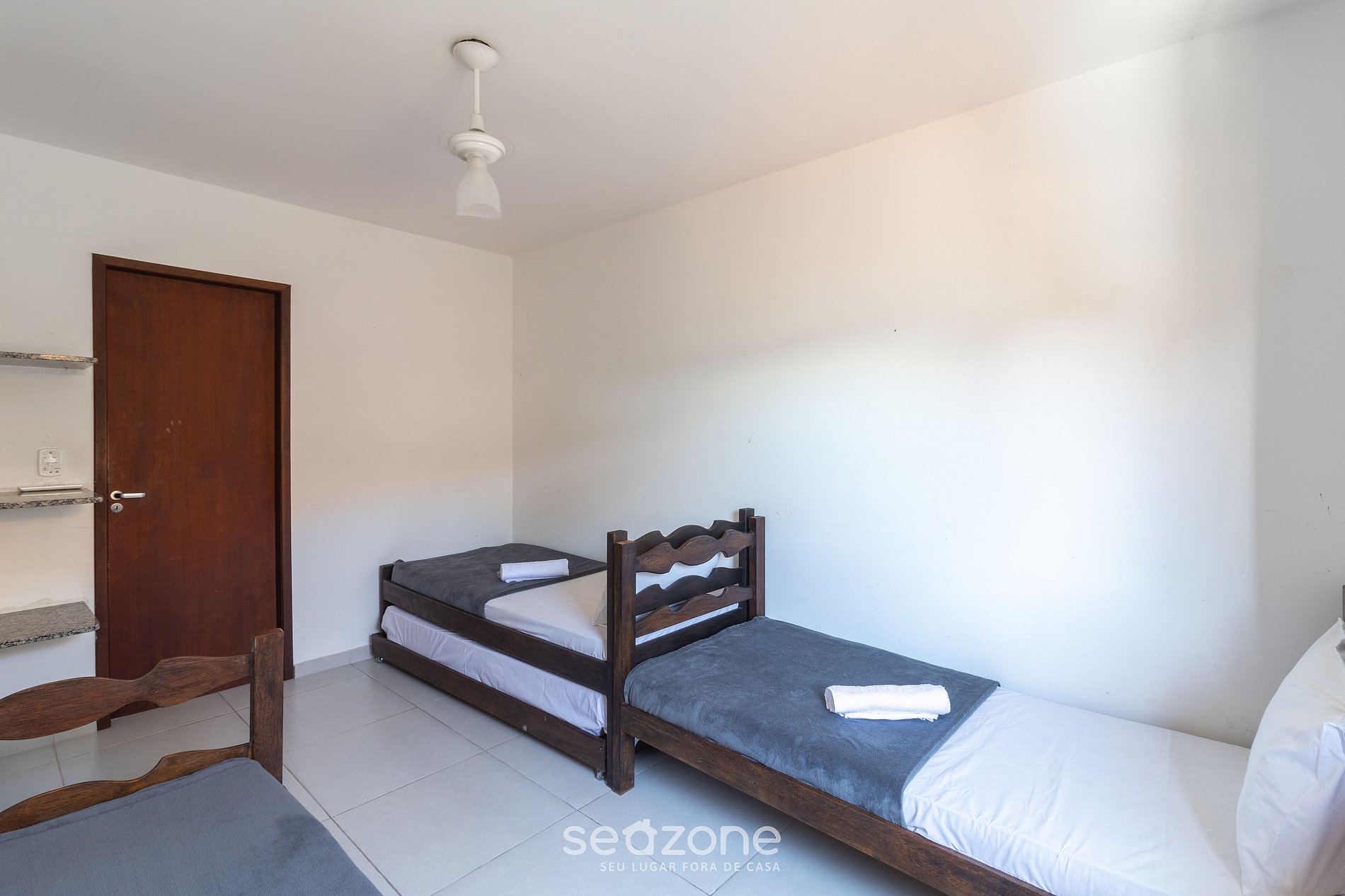 - 1 Quarto com 3 camas de solteiro, cama auxiliar de solteiro, ventilador de teto e ar-condicionado;