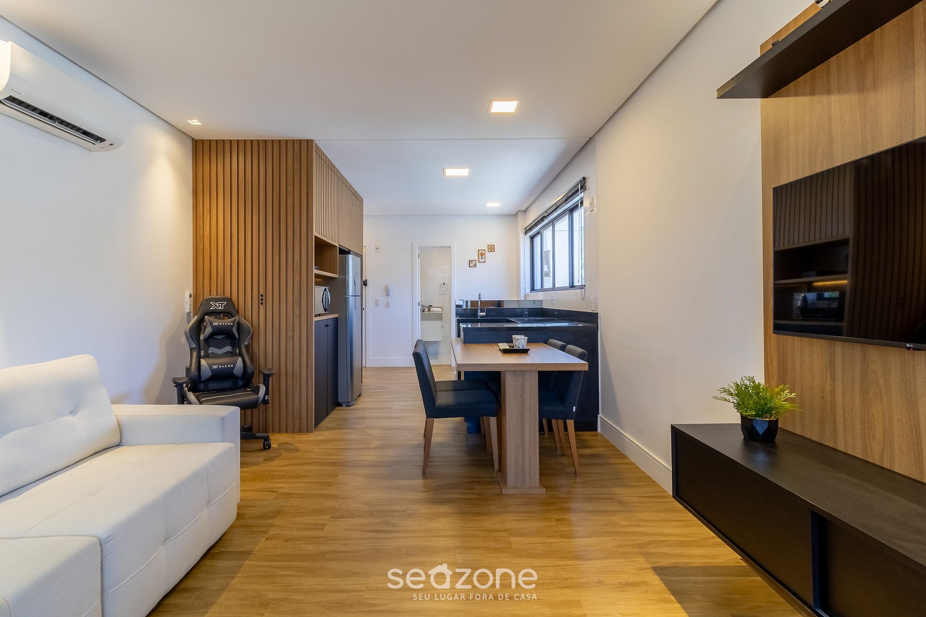 - Espaço para jantar com mesa e 4 cadeiras;