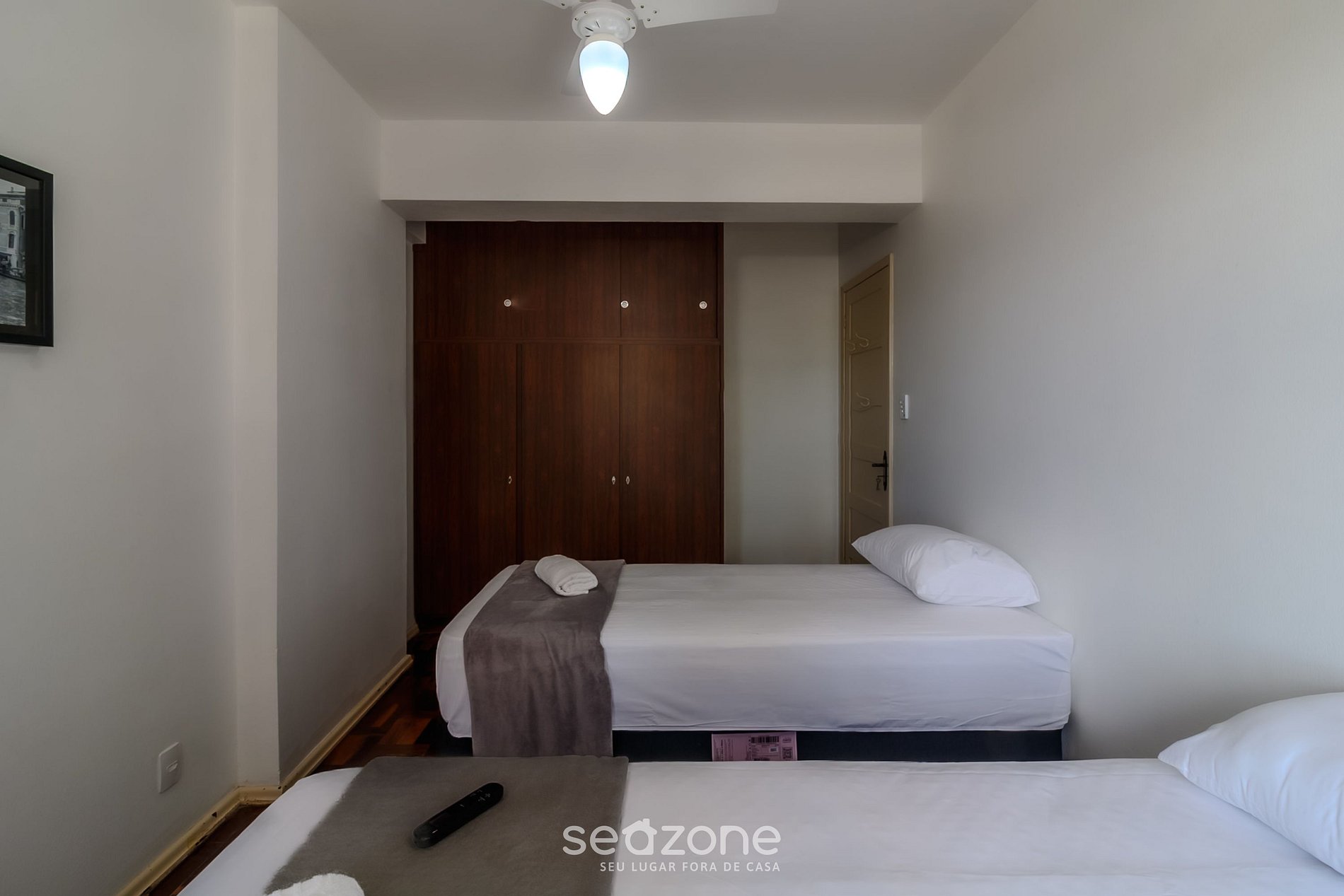 - 1 Quarto com 2 camas de solteiro, armário, ventilador e ar-condicionado;
