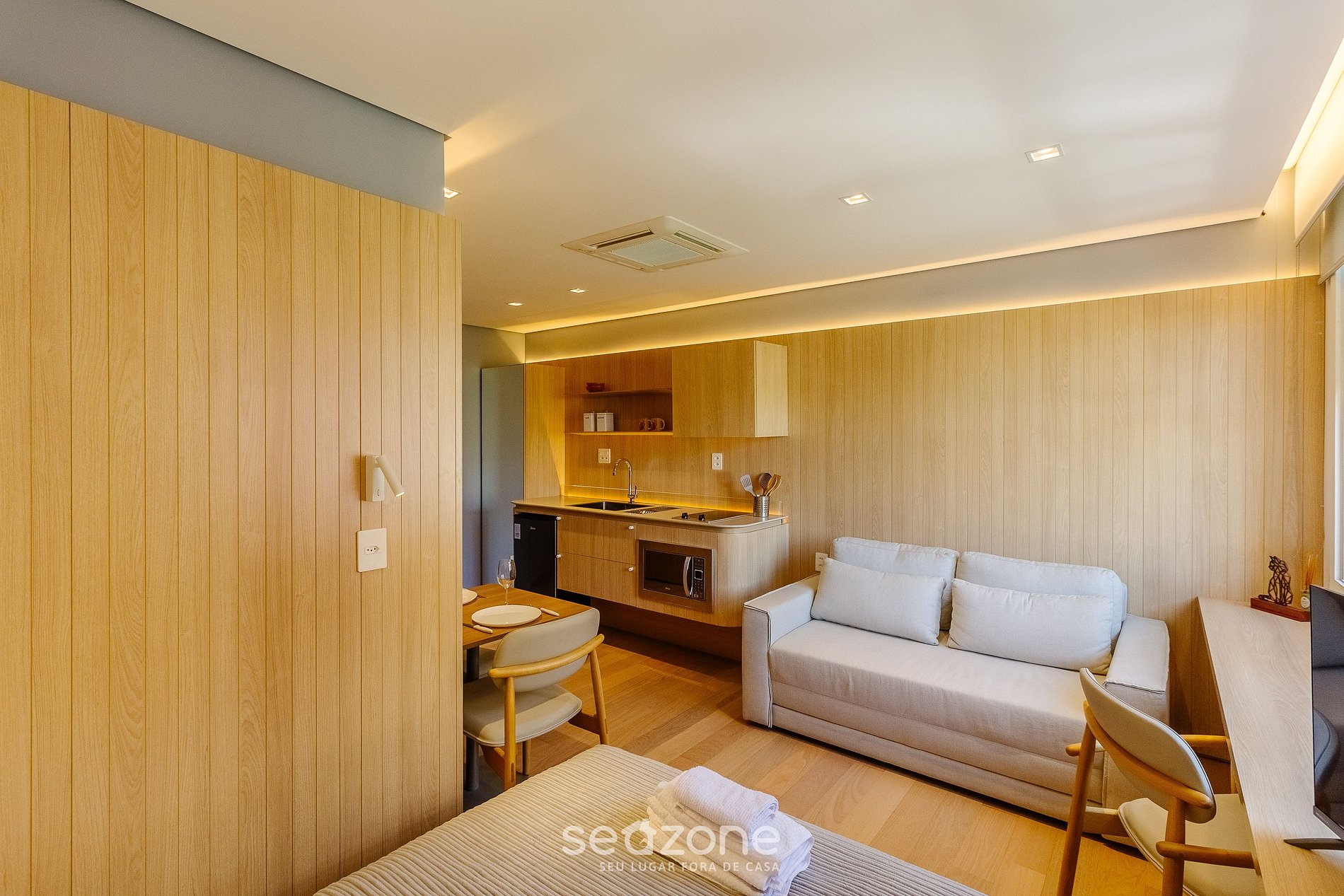 - Roupas de cama e banho de qualidade hoteleira (roupas de cama e toalhas extras são cobrados pela Seazone);