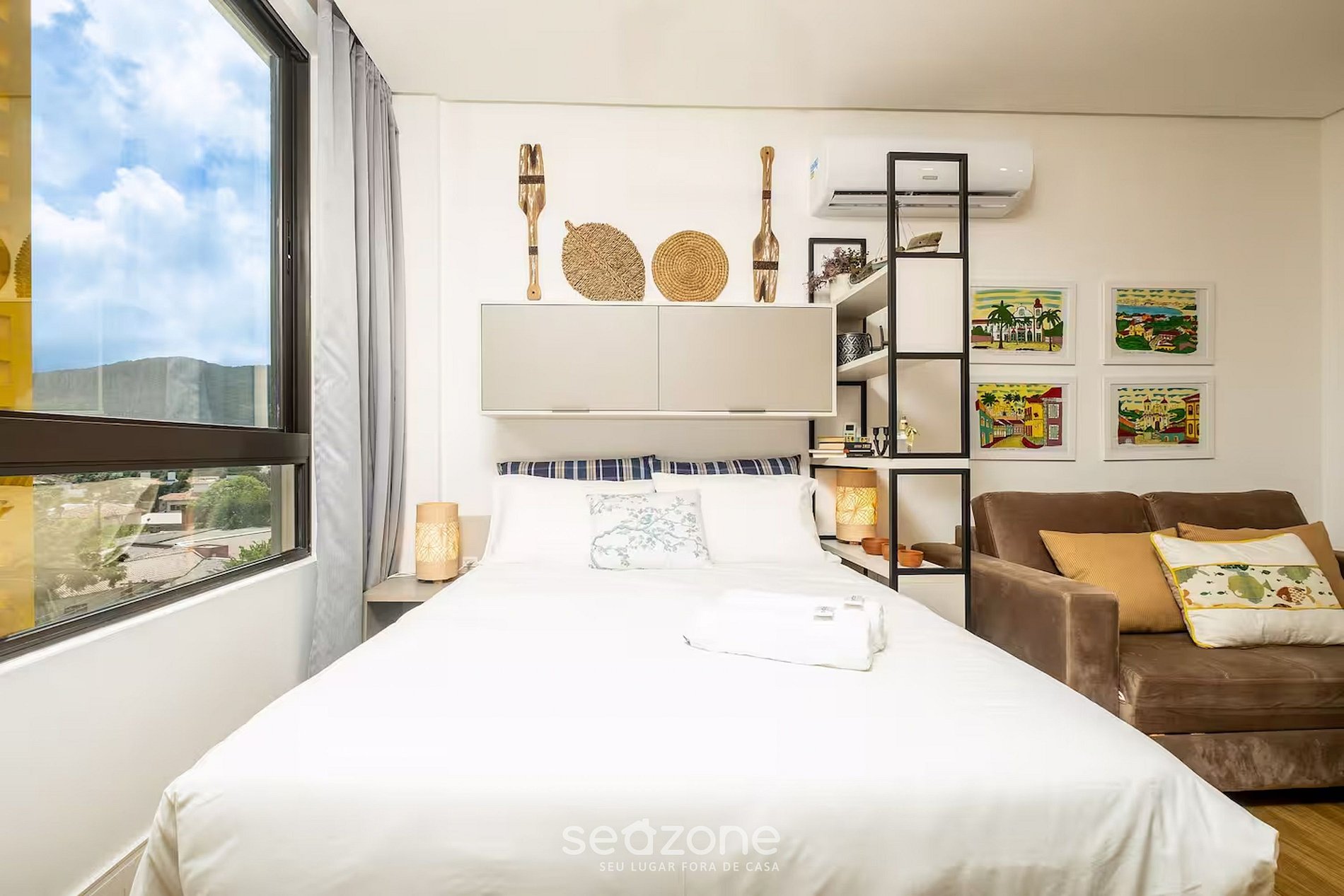 - Roupas de cama/banho e limpeza extras são solicitadas e pagas à parte, direto com a Seazone;