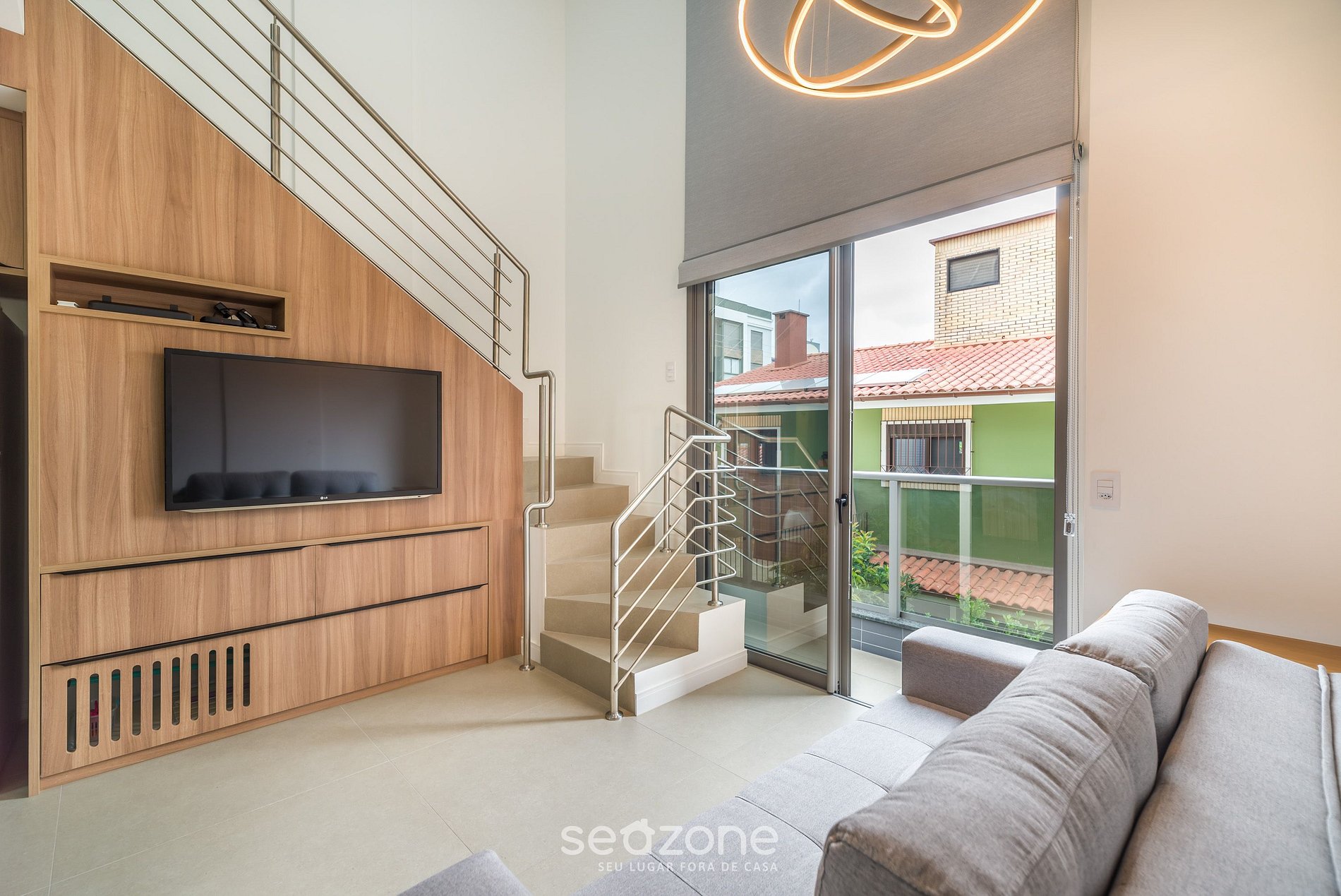 - Sala de estar com sofá-cama casal, smart TV e ar-condicionado (para todo o ambiente);
