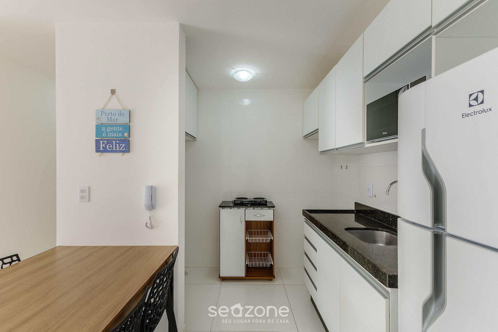 Com uma sacada com vista para o mar, 2 quartos climatizados, uma sala acolhedora e uma cozinha equipada, este é o refúgio perfeito para quem busca conforto. Além disso está próximo de supermercados e a apenas 400 metros da Praia do Sul, permite que você aproveite o melhor do litoral.