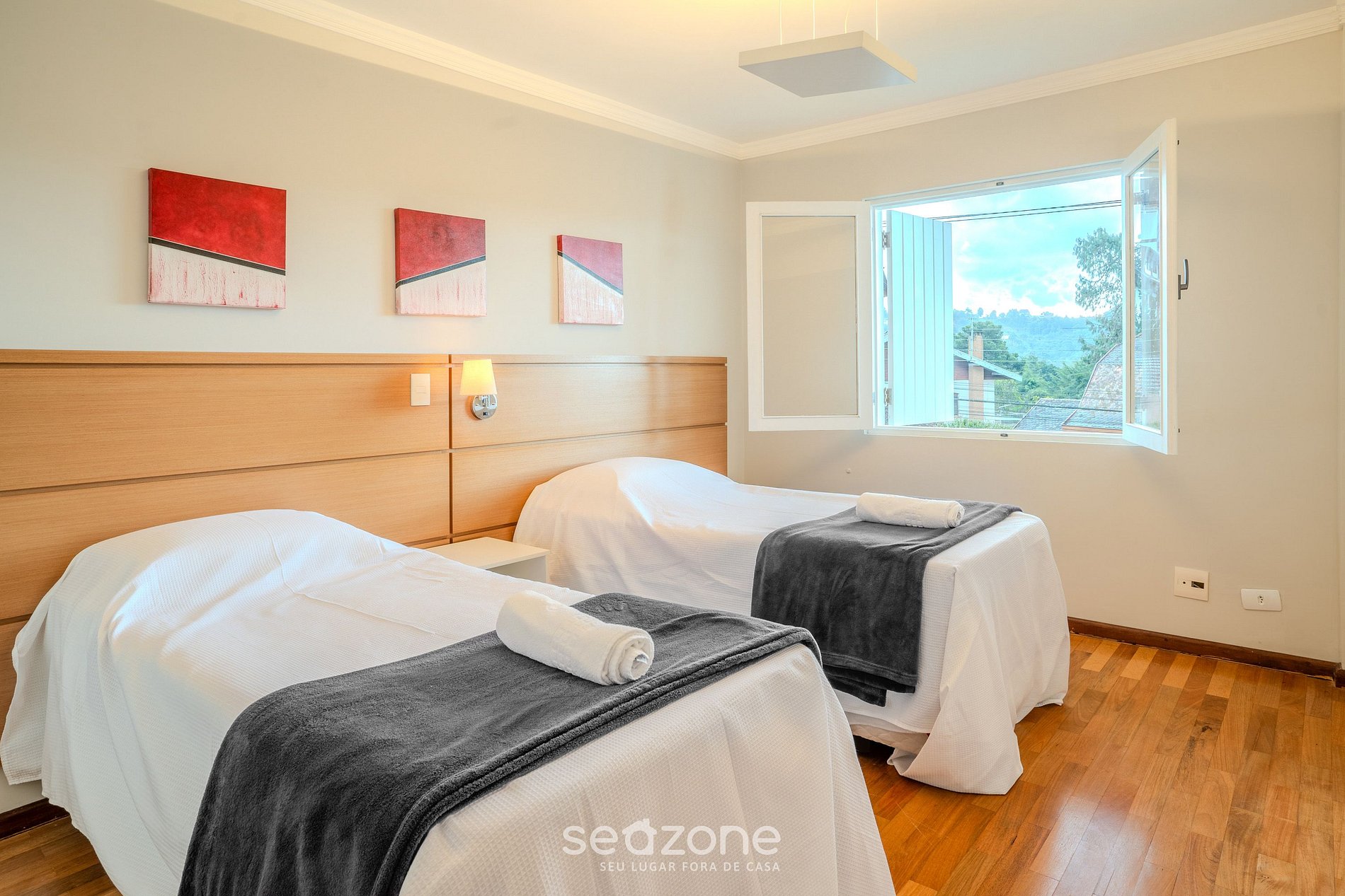 - 1 Quarto com 2 bicamas de solteiro, guarda-roupa e aquecedor;