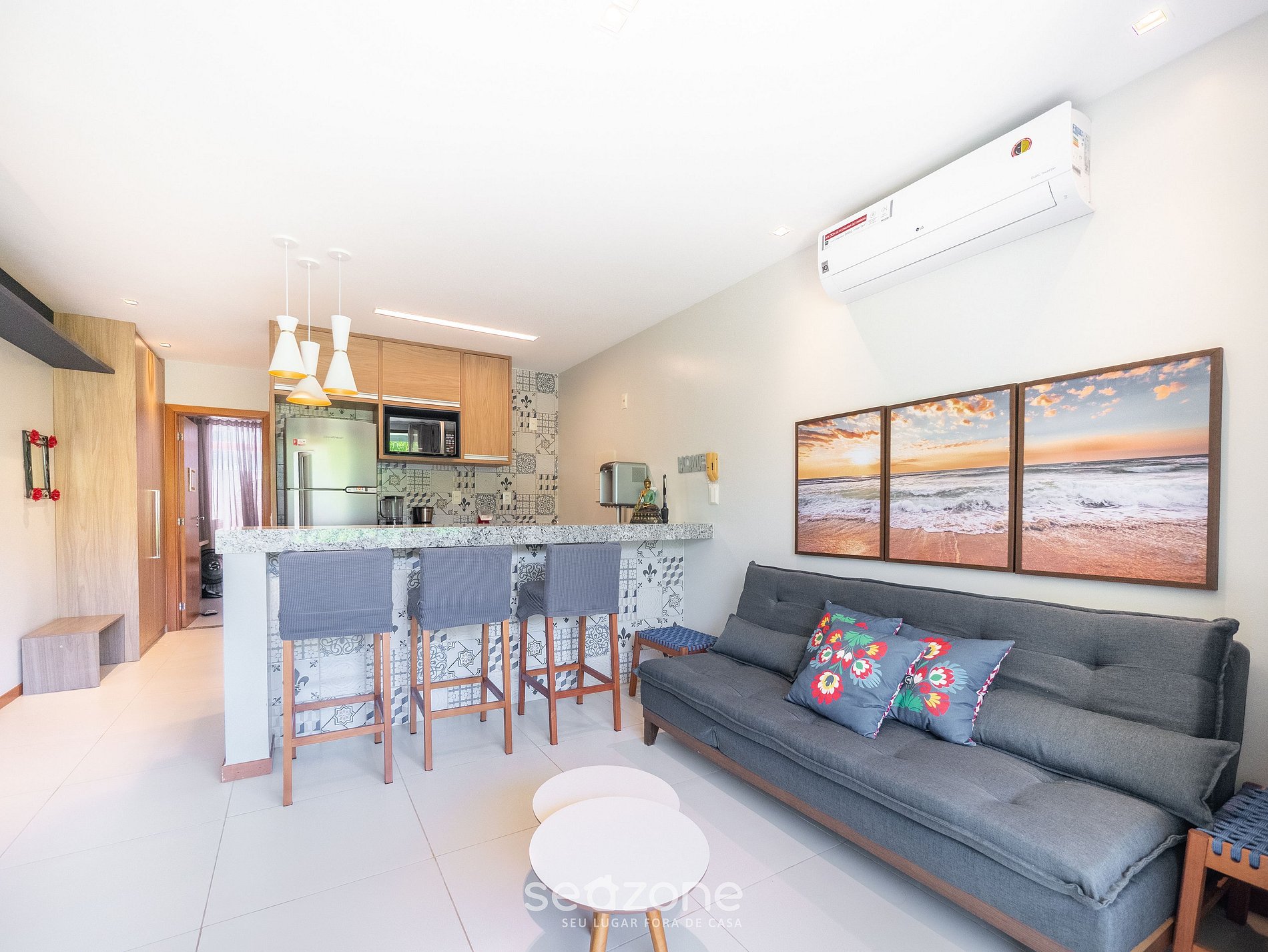Relaxe e aproveite o paraíso de Imbassaí neste apartamento incrível! Desfrute da varanda aconchegante, da sala com Smart TV e do quarto climatizado perfeito para descansar ou trabalhar no espaço pronto para notebook. O condomínio conta com churrasqueira e academia para você curtir ao máximo. Conheça o litoral baiano, garantindo muito sol e mar.